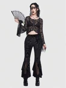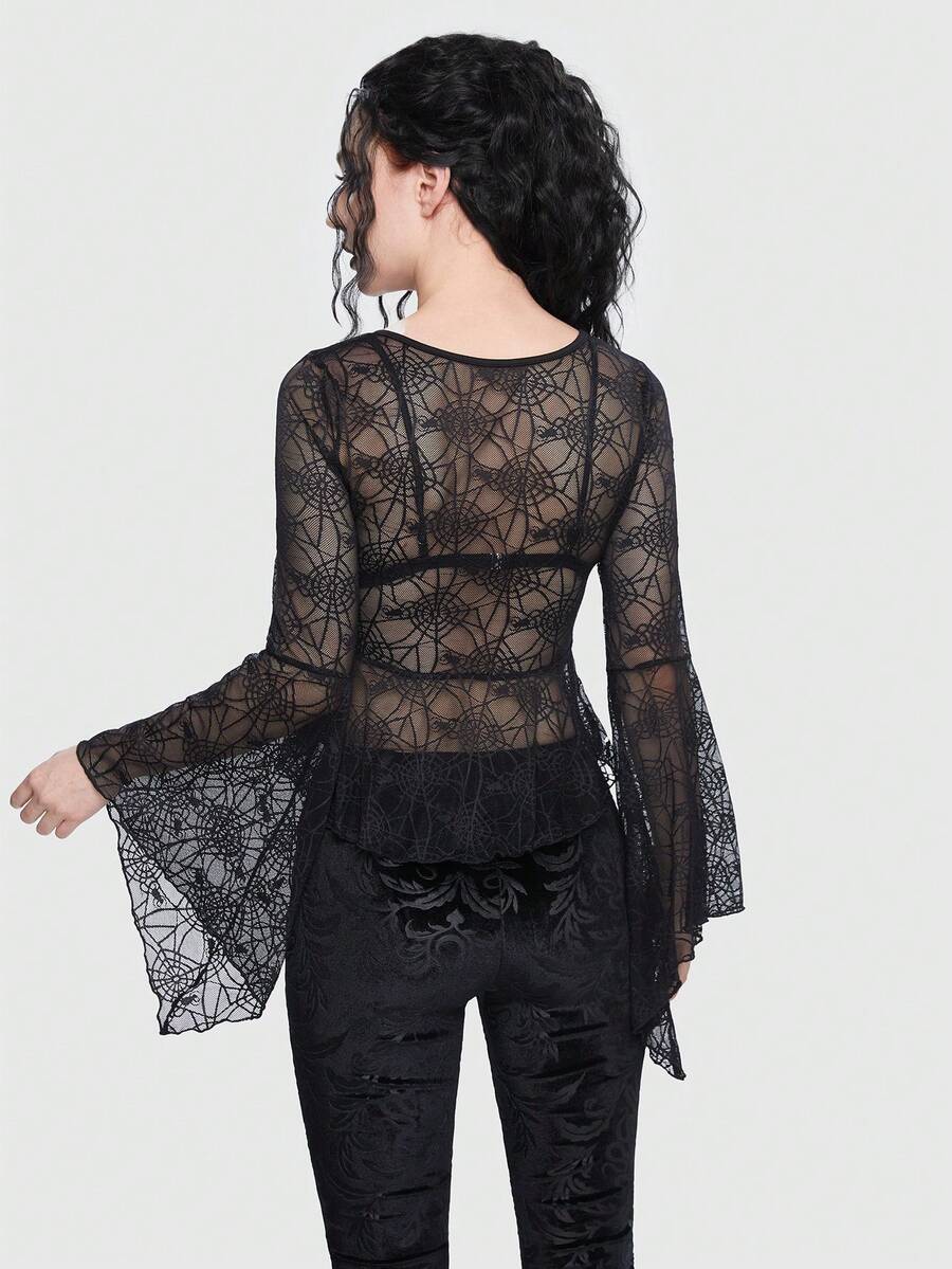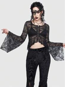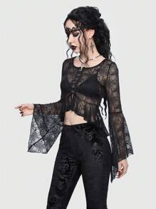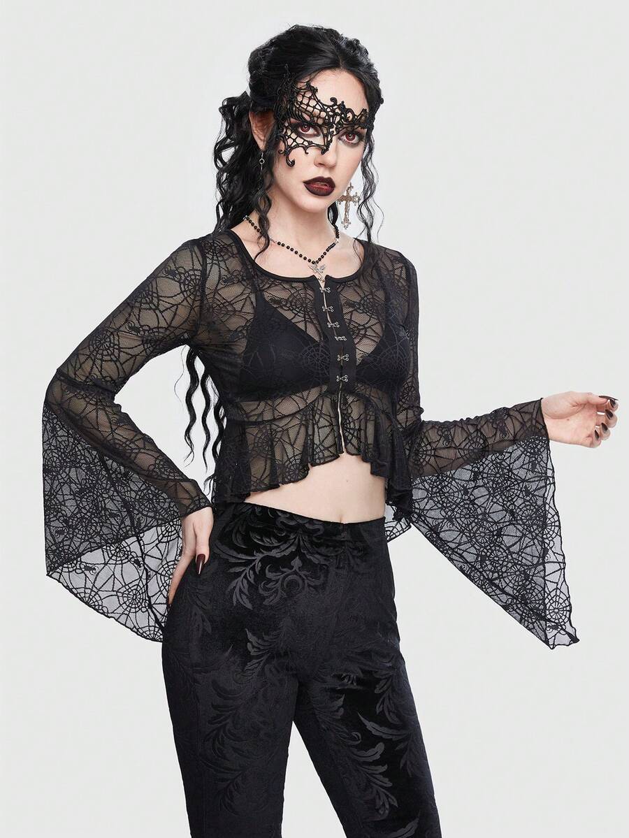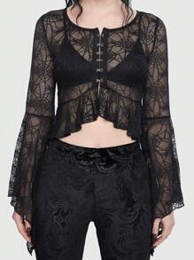 Goth Top con estampado de telaraña con corchete de manga amplia peplum con encaje