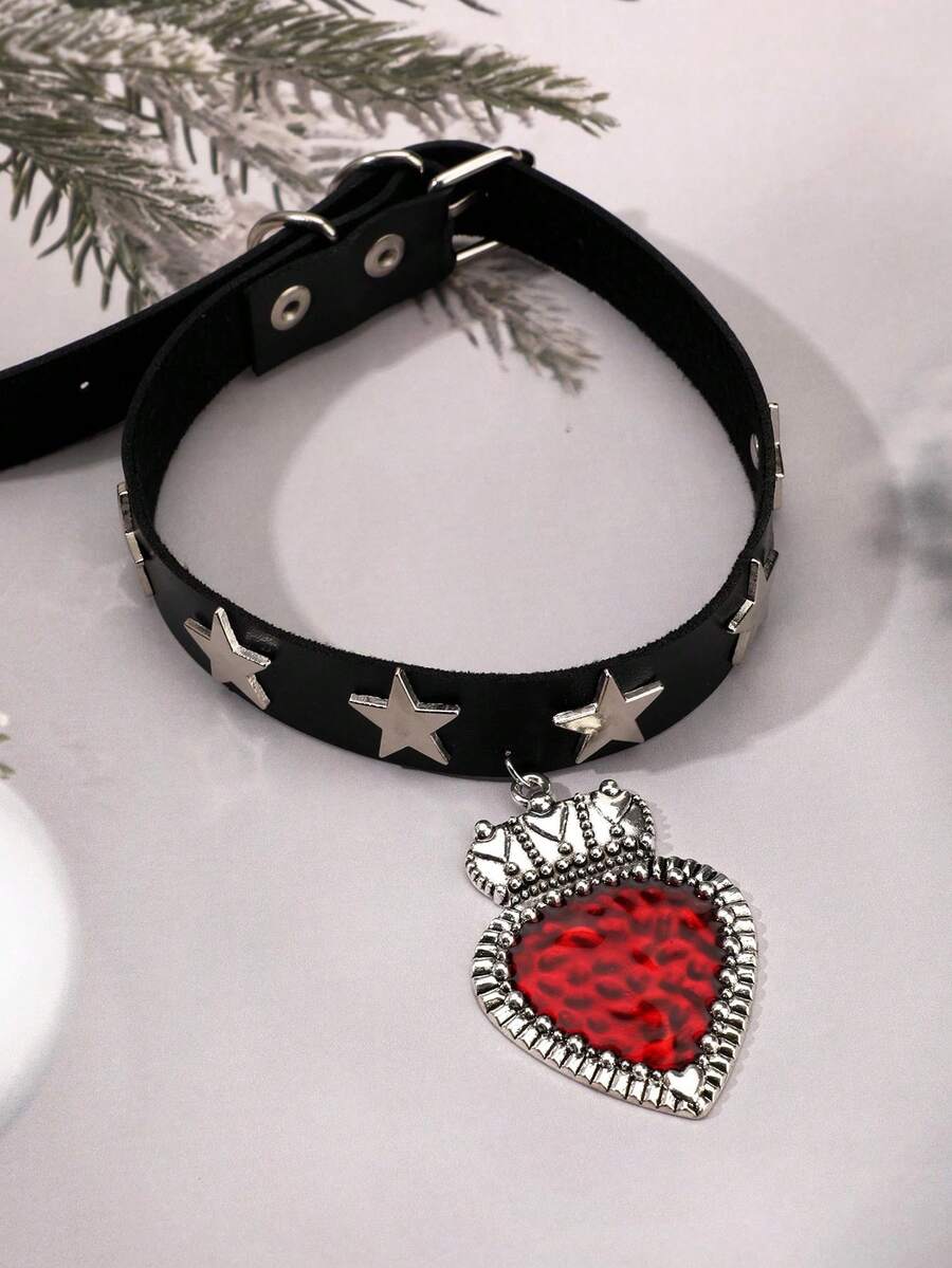 Goth con diseño de estrella en forma de corona rojo con diseño de diamante de imitación colgante cuello