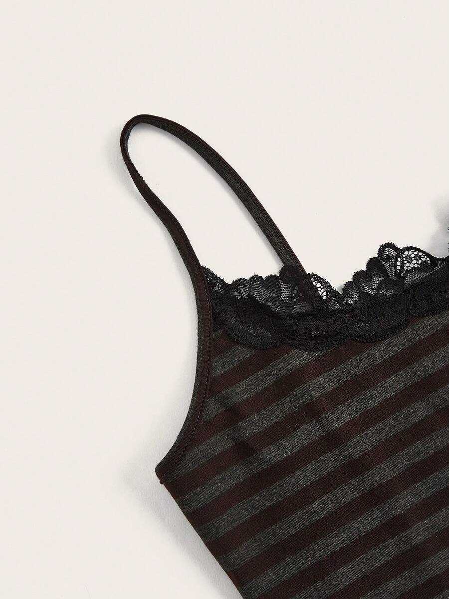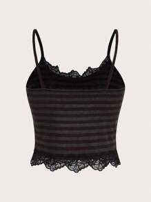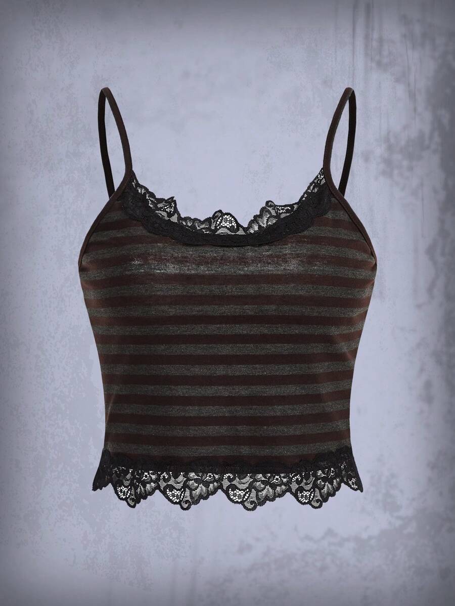 Goth Top de tirantes de rayas con encaje en contraste