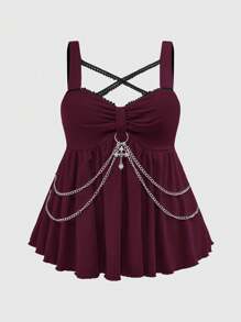 Goth Top de tirantes con decoración de cadena cruzada y cruz, estilo gótico punk, para mujer de talla grande en verano