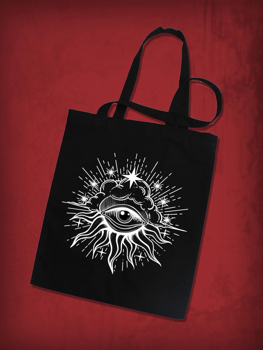Goth Bolsa de compras con estampado de sol y luna