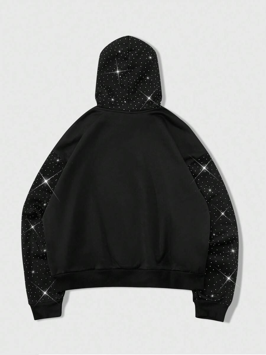 Goth Sudadera con capucha unisex con gráfico de Jesús y adornos de rhinestone, uso casual de todos los días, otoño/invierno