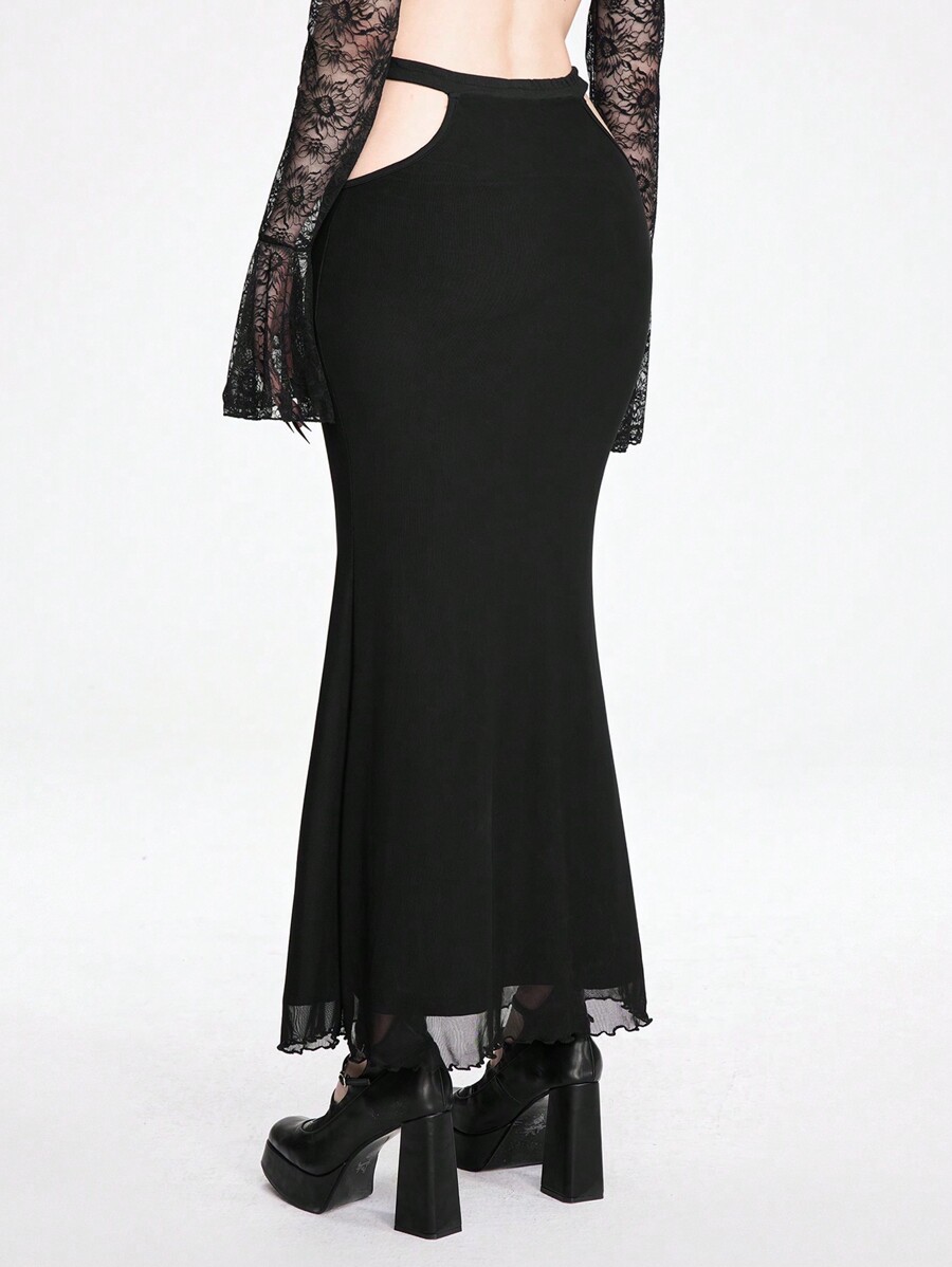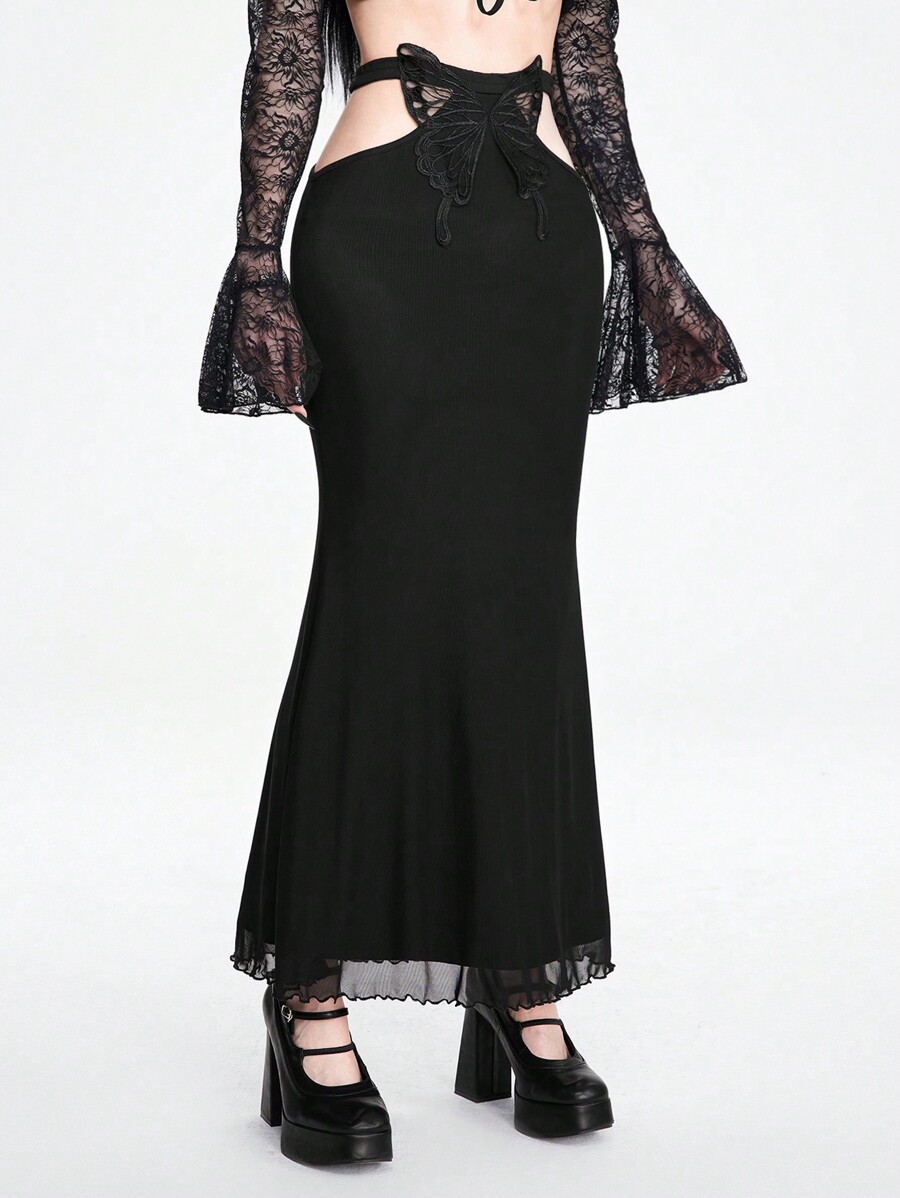 Goth Falda de sirena ajustada que abraza las caderas con diseño vaciado gótico oscuro de vampiro y apliques de mariposa para mujer