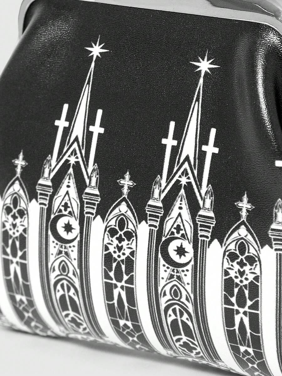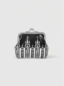 Goth Monedero con estampado de castillo vintage, con diseño fashionable y elegante