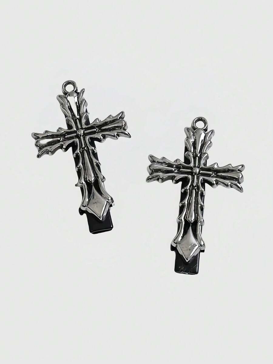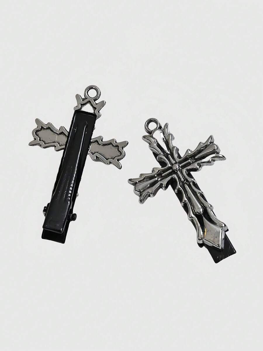 Goth Clip de pelo de cruz vintage y cute, decoración de clip lateral para flequillo, diadema estilo Y2K, adecuado para Halloween