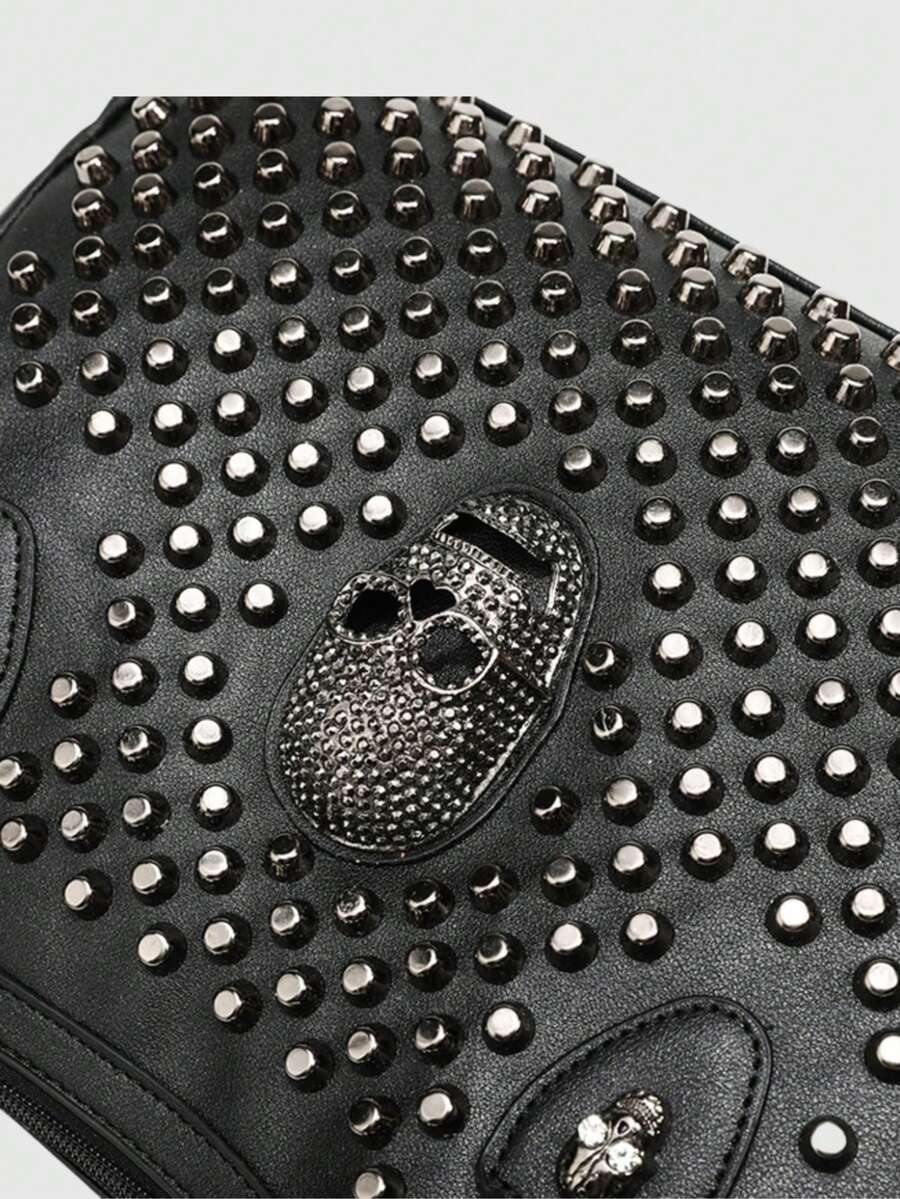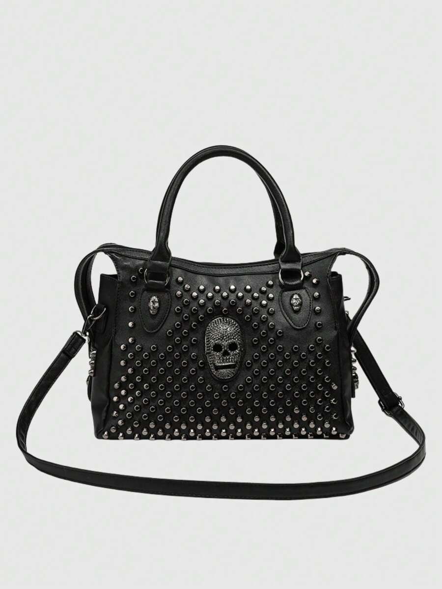 Goth Bolso de mano con diseño de calavera estilo vintage punk, bolso cruzado grande de uso casual, de calle y gótico con remaches, de gran capacidad