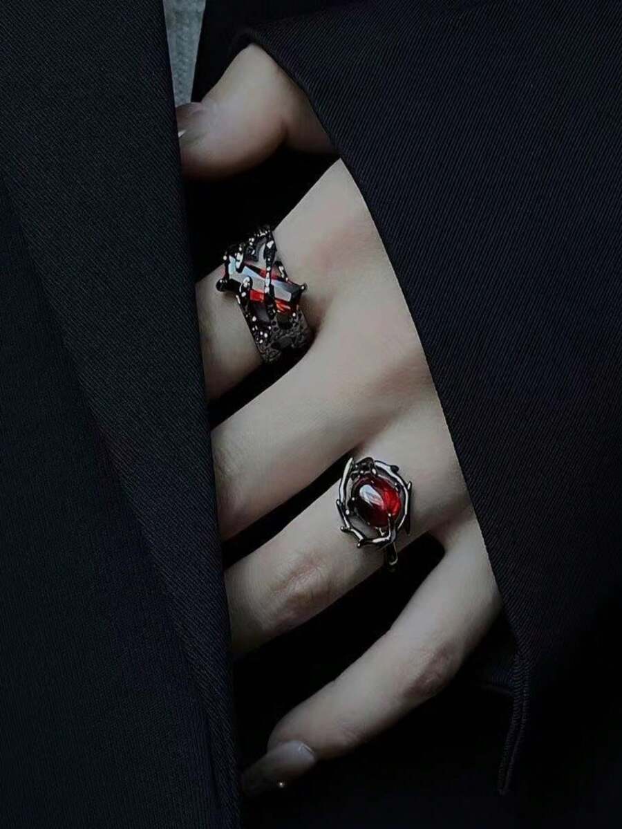 Goth Juego De Anillos Vintage De Diseño De Piedras Preciosas Geométricas Rojas Para Mujer, Anillo De Textura Hueca Punk Y Oscura