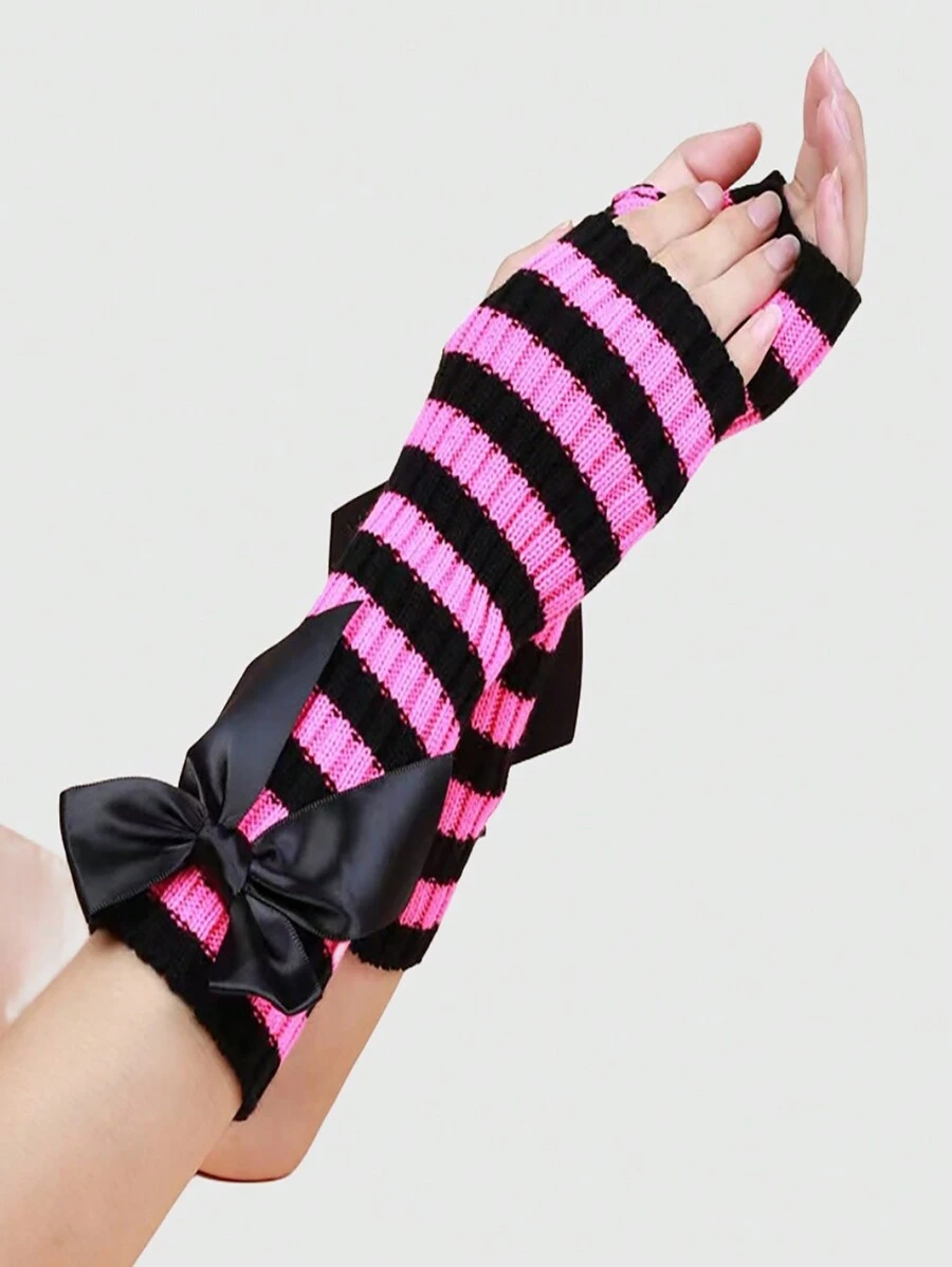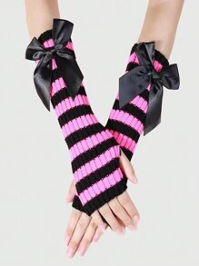 Goth 1 par de mangas de brazo con decoración de lazo y patrón de rayas para mujer
