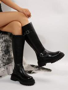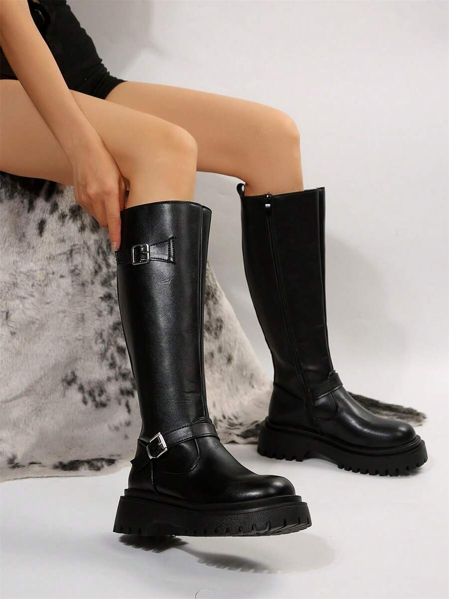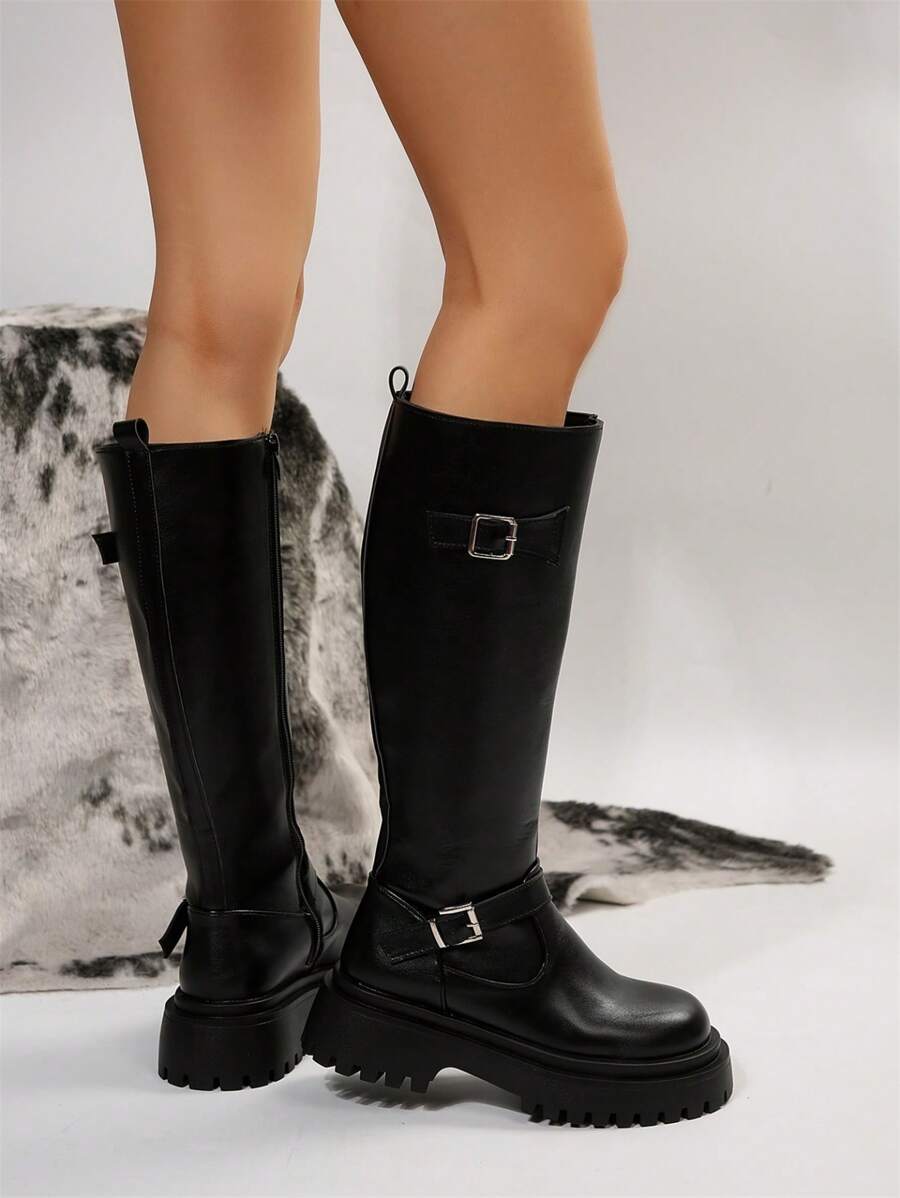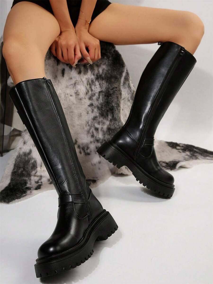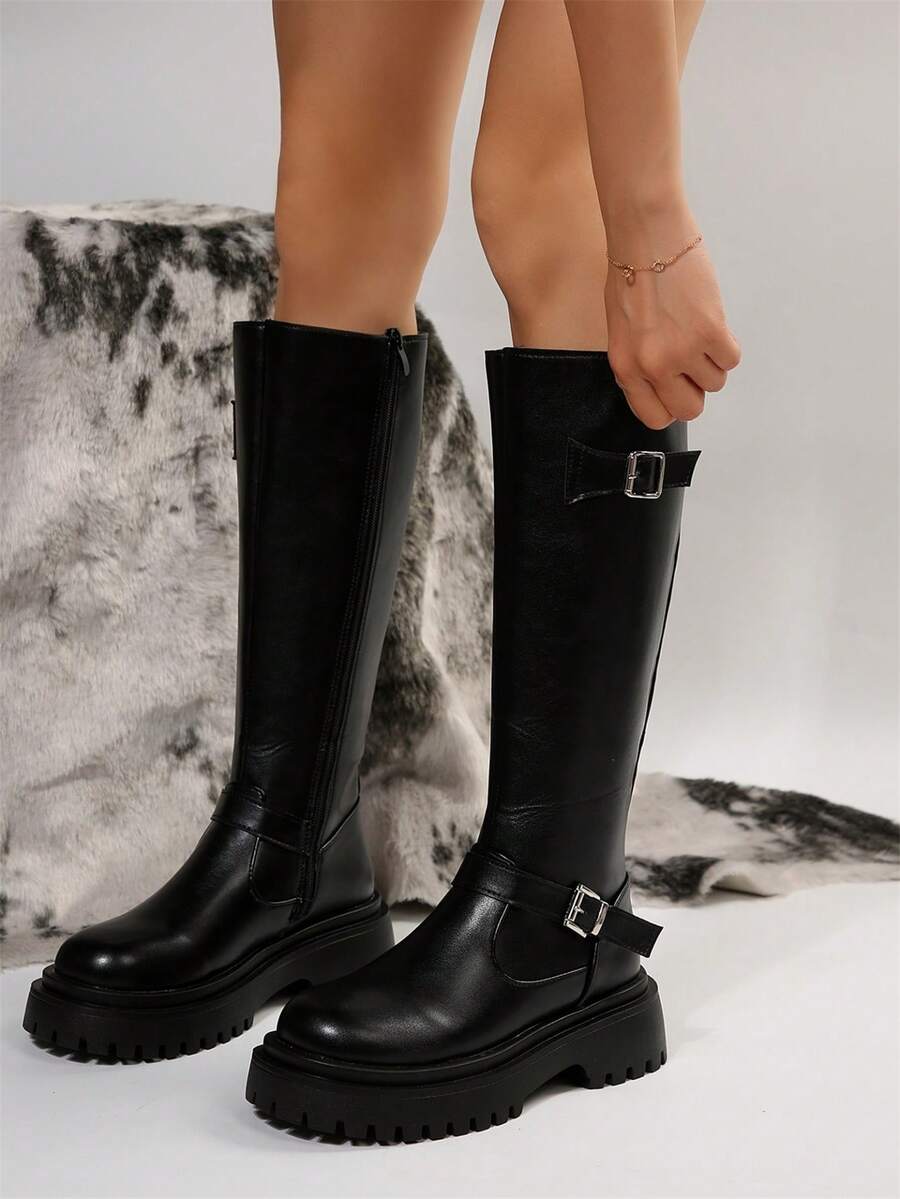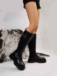 Goth Las mujeres abrochan las botas de montar a caballo con cremallera lateral de la decoración, botas al aire libre frescas de la moda