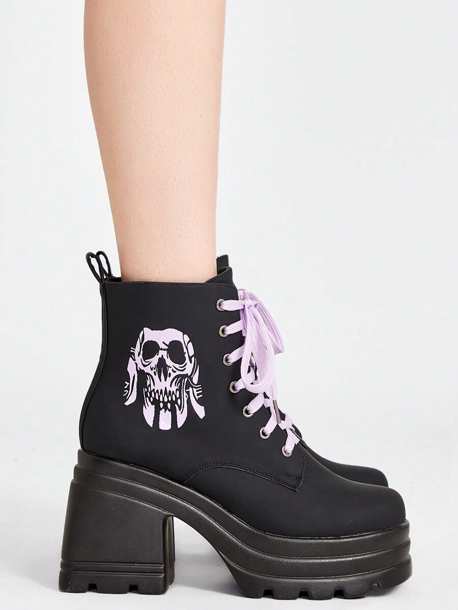 Goth Botas con suela gruesa y cómoda con decoración de calavera para mujer para Halloween