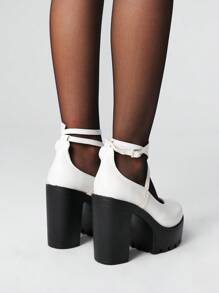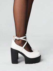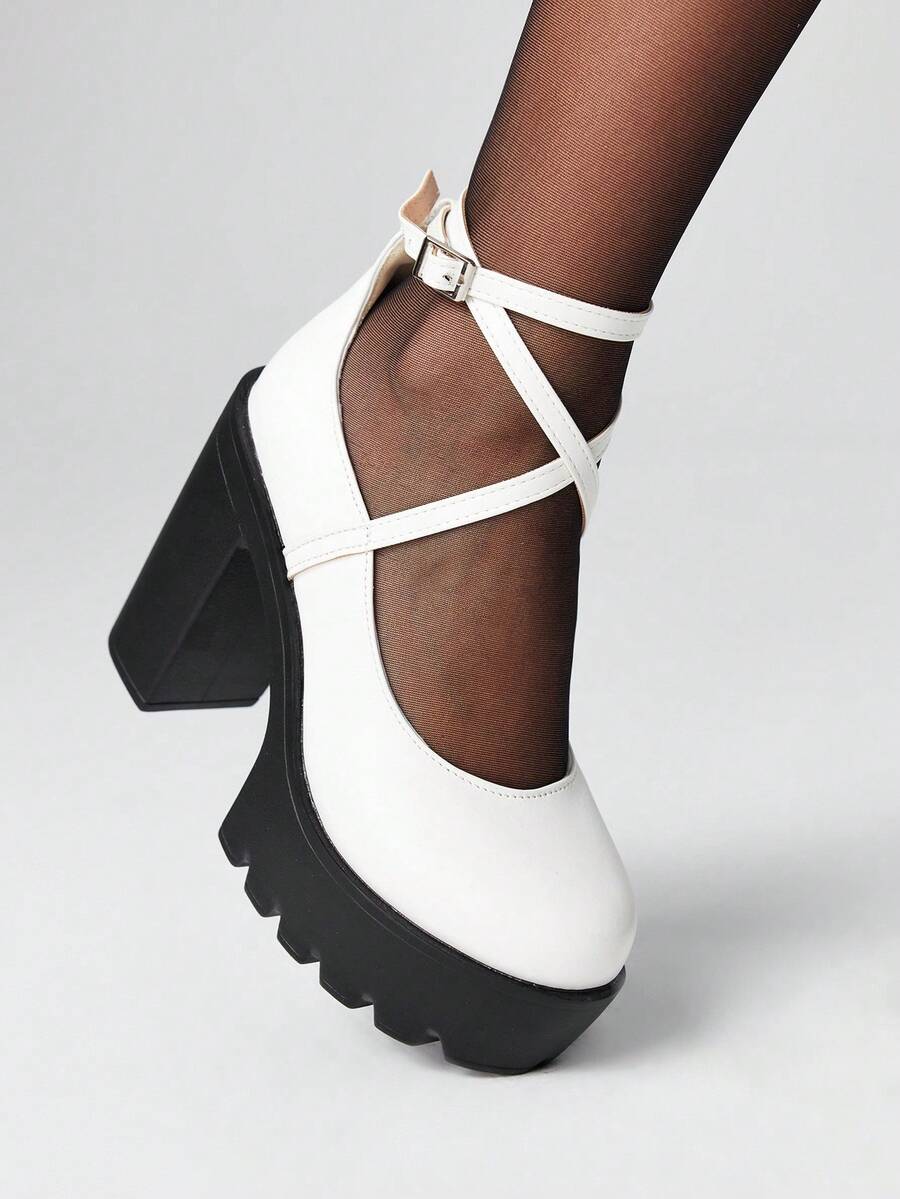 Goth Zapatos de mujer estilo gótico punk Mary Jane, de punta cerrada con correa cruzada, tacón grueso, hebilla de correa, uniforme JK, plataforma impermeable, tacones formales para trabajo, Halloween
