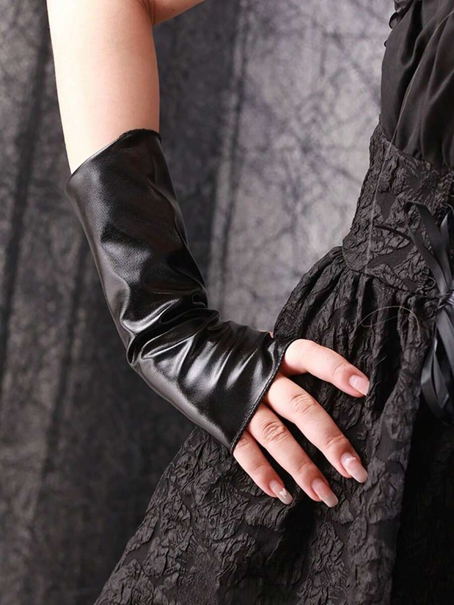 Goth Manga de brazo negro con laca y longitud media para mujer