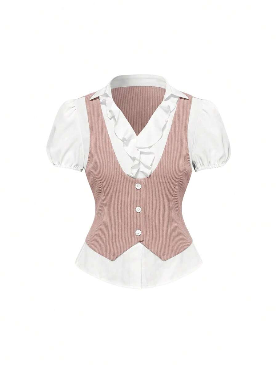 Goth Blusa casual de mujer con mangas de pétalos 2 en 1