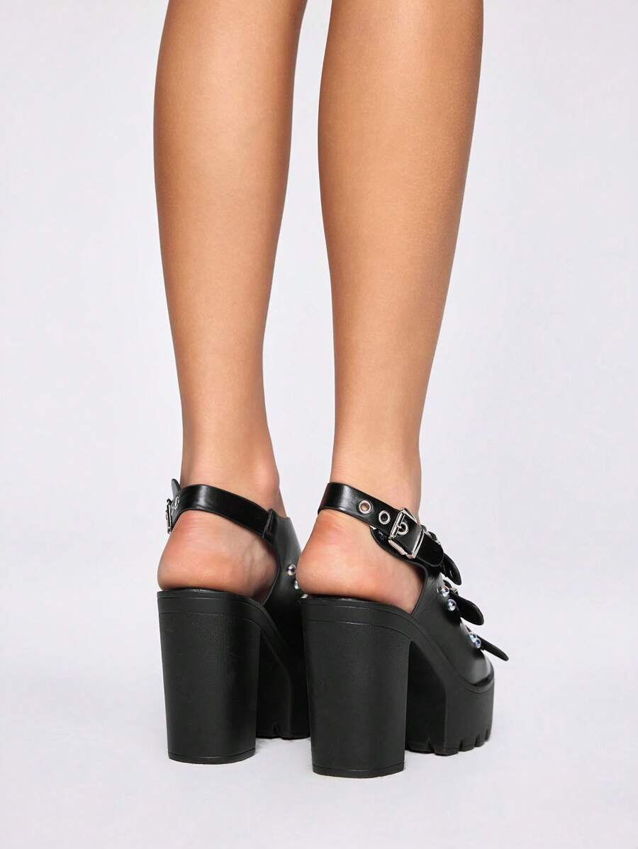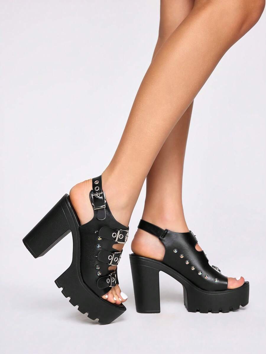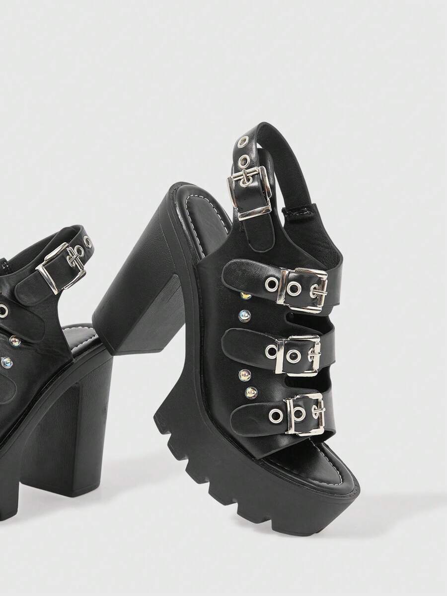 Goth Zapatos de tacón estilo gótico y punk para mujeres, con punta descubierta y tacón grueso, cierre con hebilla de cinturón, adecuados para vestidos formales de trabajo, fiesta y noche, sandalias de tacón alto