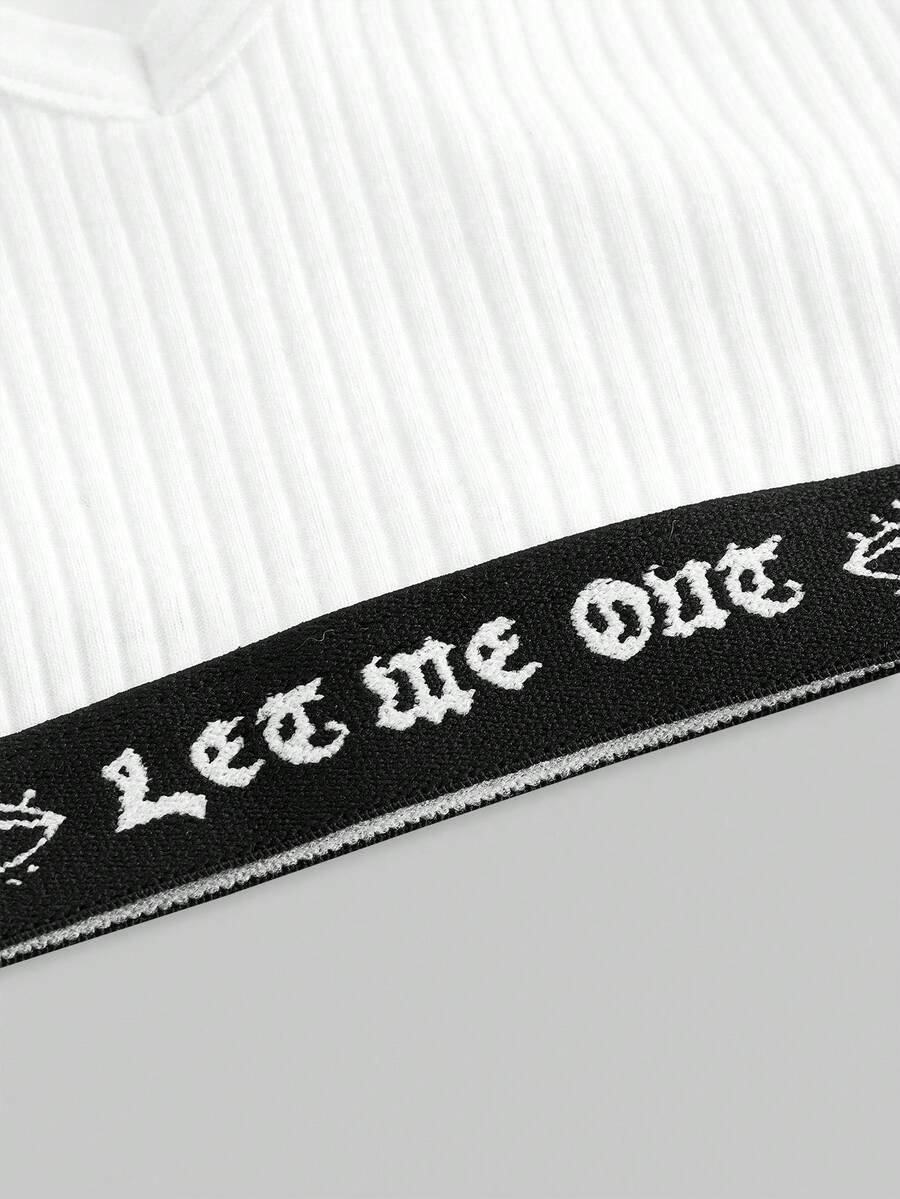 Goth Sujetador deportivo de mujer con tejido acanalado y sin relleno
