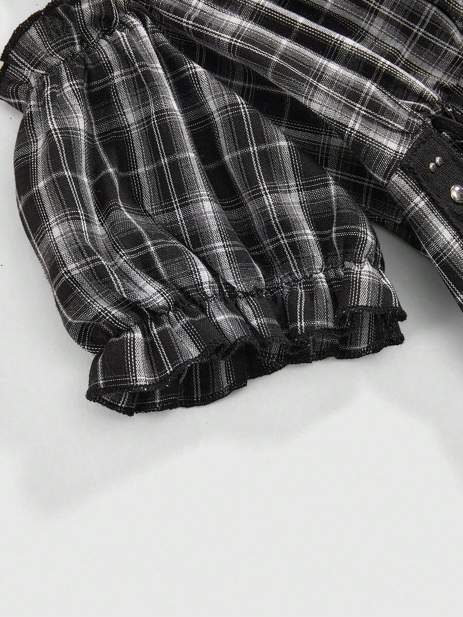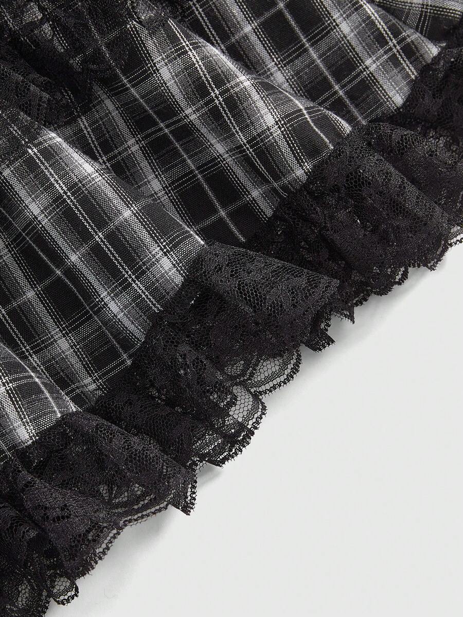 Goth Vestido mini casual de verano para mujer con tirantes de hombros abiertos a cuadros