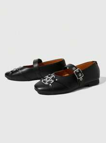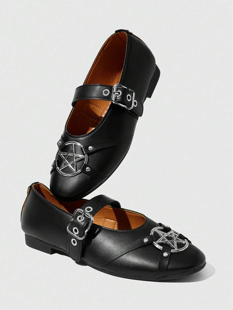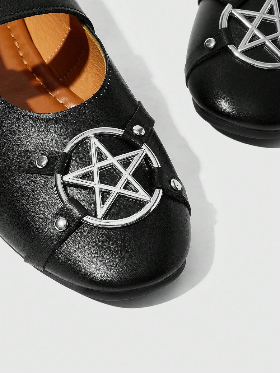 Goth Zapatos plataforma de estilo gótico, punk y rock para mujer con punta cerrada, suela blanda para uso formal en el trabajo, bailarinas de estilo Mary Jane con estrella