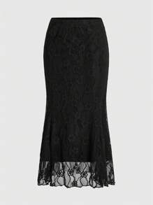 Goth Falda sirena elegante y romántica de encaje en unicolor para mujer