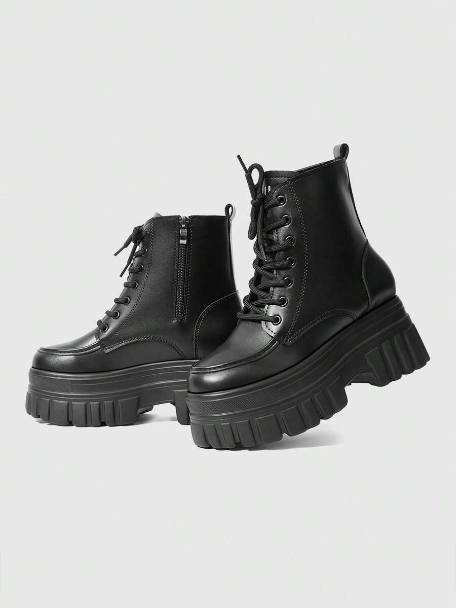Goth Botas de tobillo con cuña y suela gruesa, versátiles para el uso diario de las mujeres