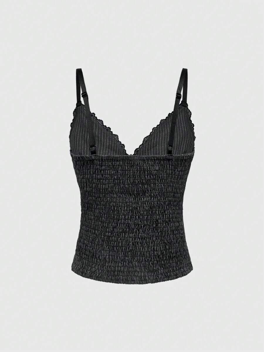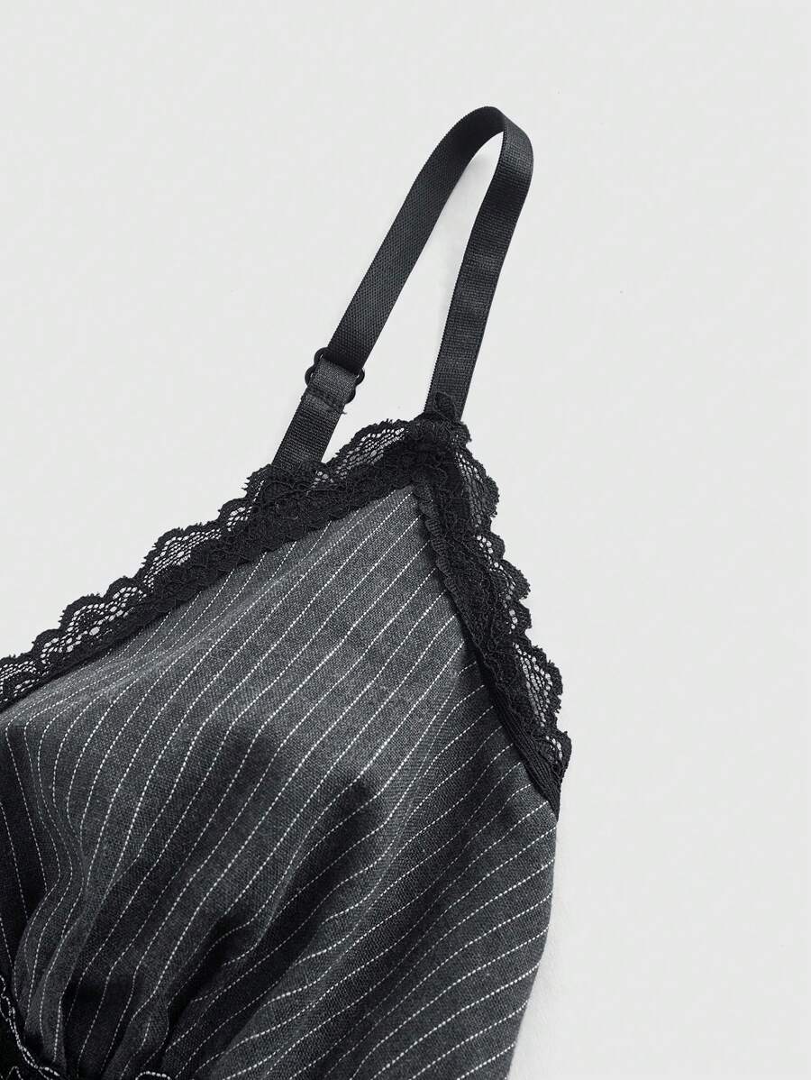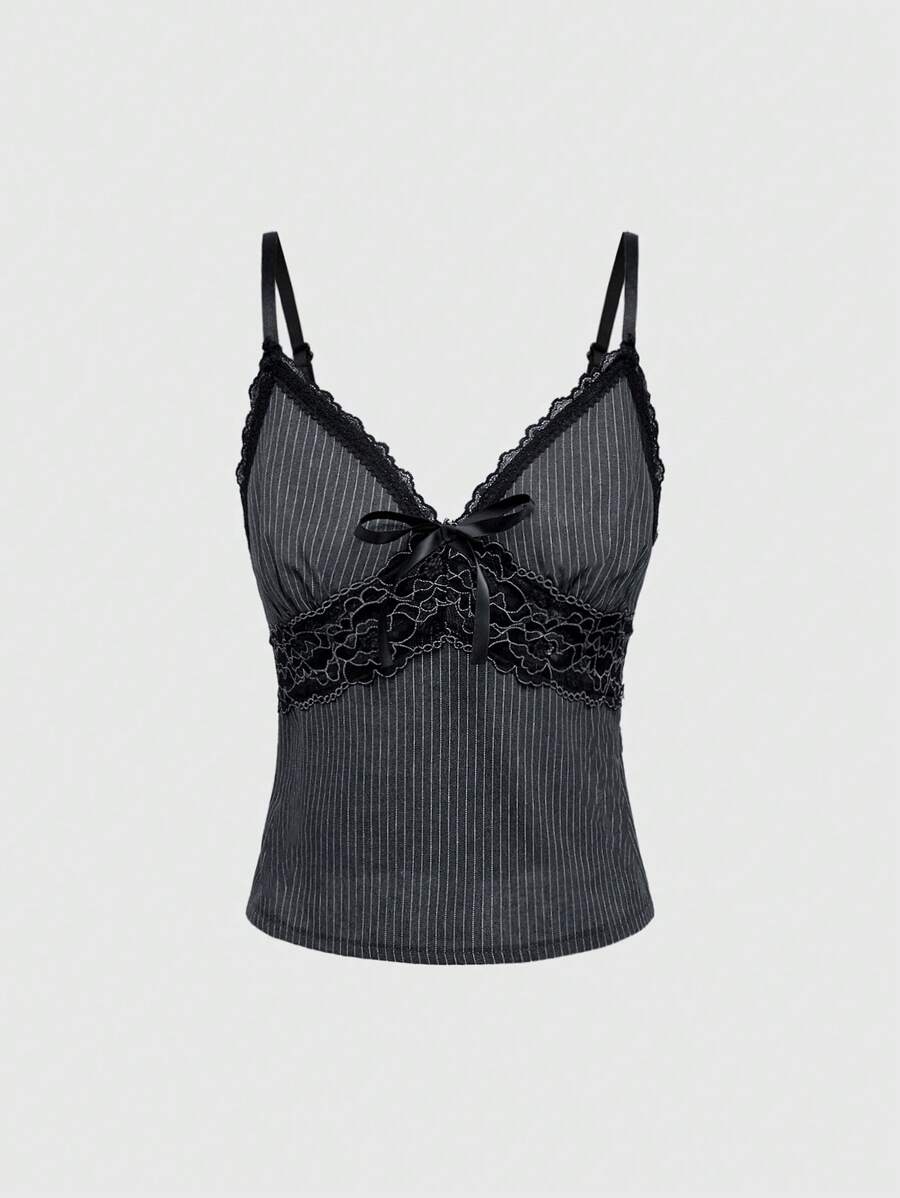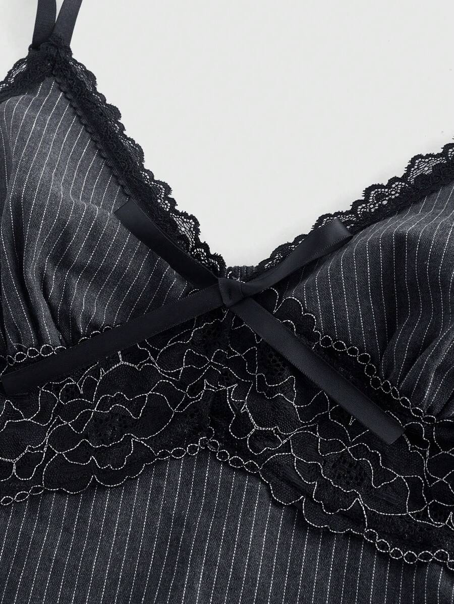 Goth Camiseta interior de mujer con encaje gótico, lazo de contraste de color y rayas