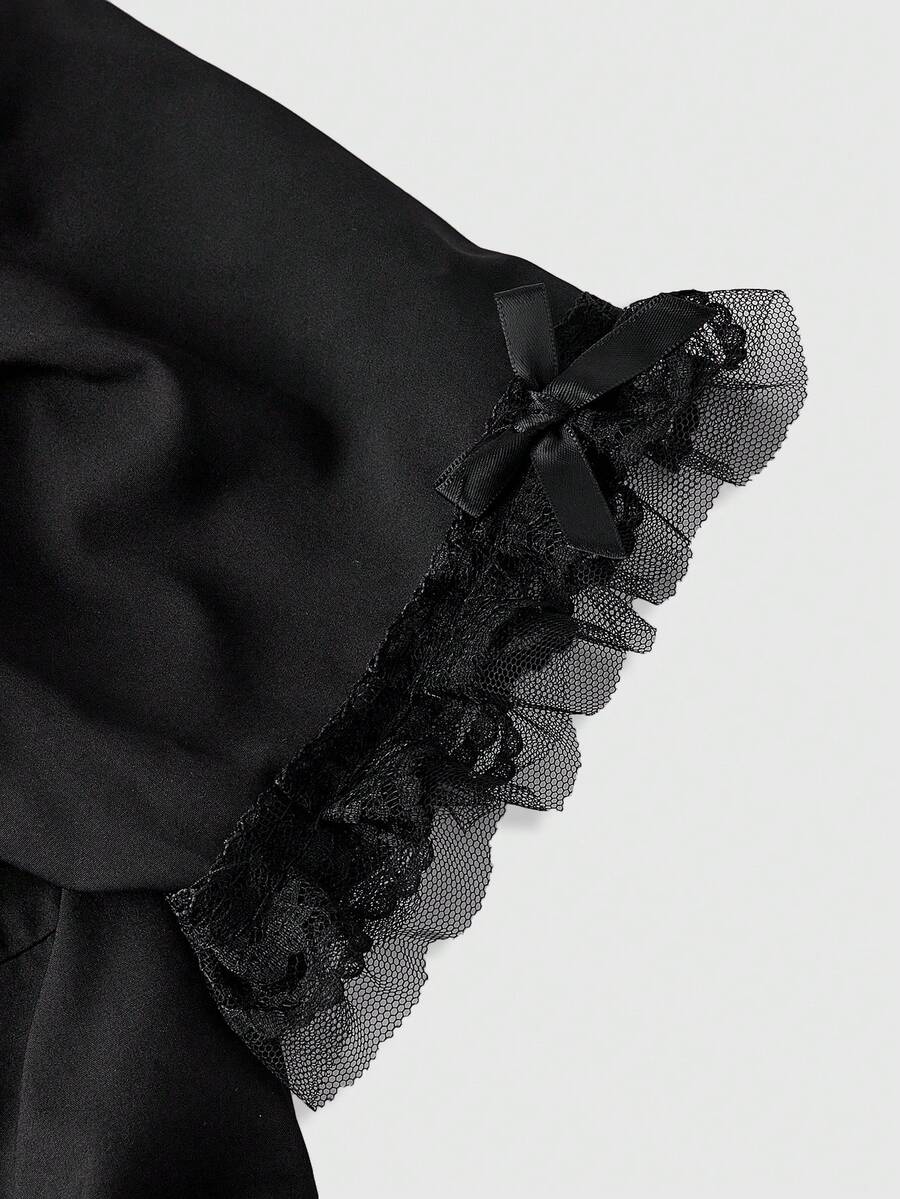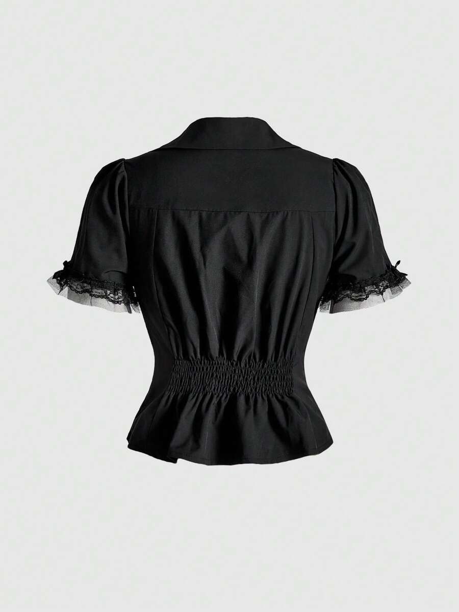 Goth Blusa ajustada con mangas cortas y aplicaciones de encaje