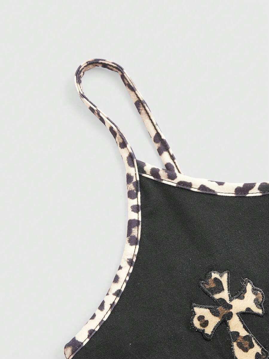 Goth Parte superior de tirantes cruzados con estampado de leopardo para mujer, escuela