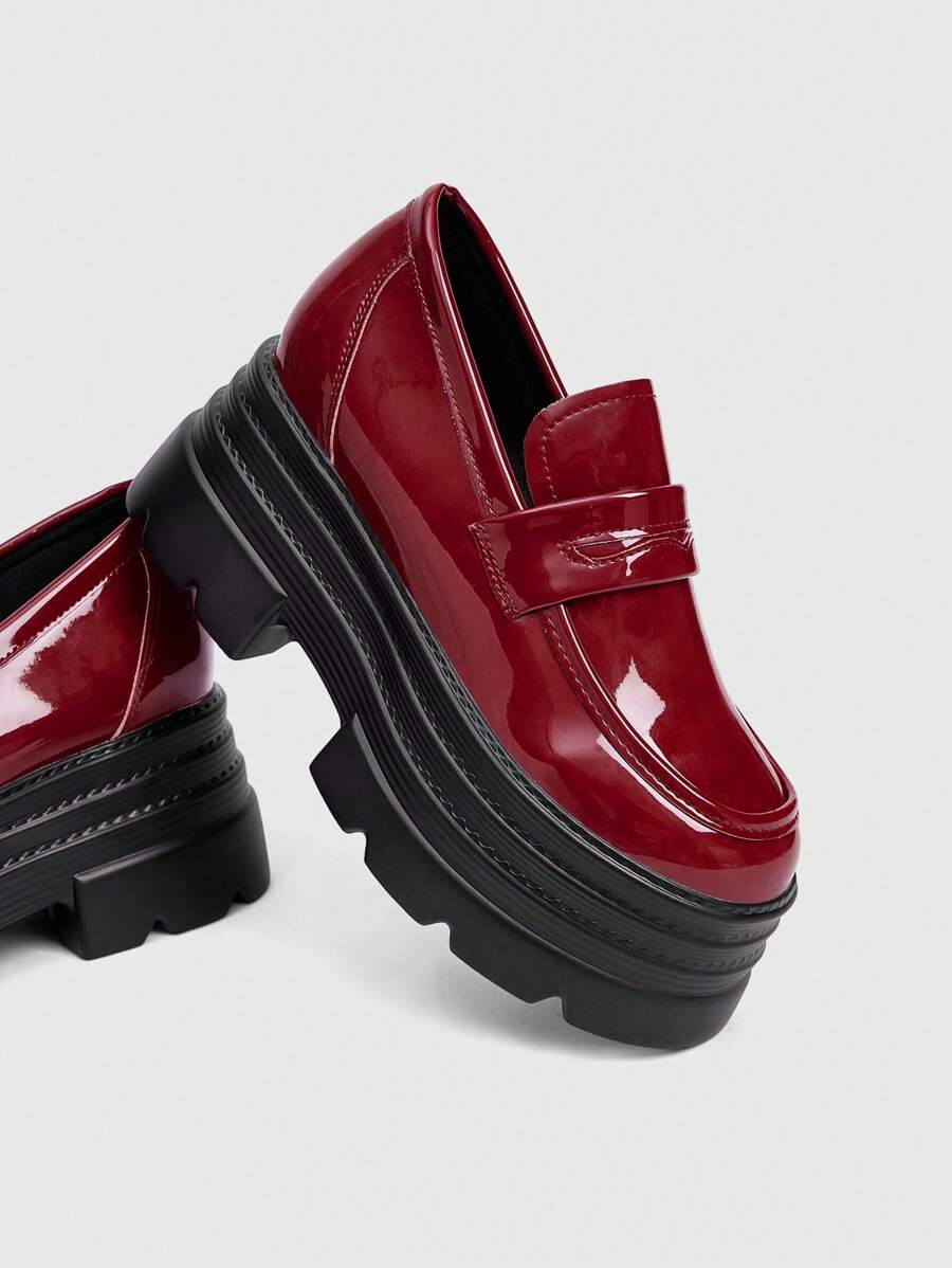 Goth Zapatos de estilo Mary Jane rojos para mujer, de estilo slip-on, zapatos escolares japoneses, zapatos formales de trabajo, zapatos planos con plataforma y suela gruesa