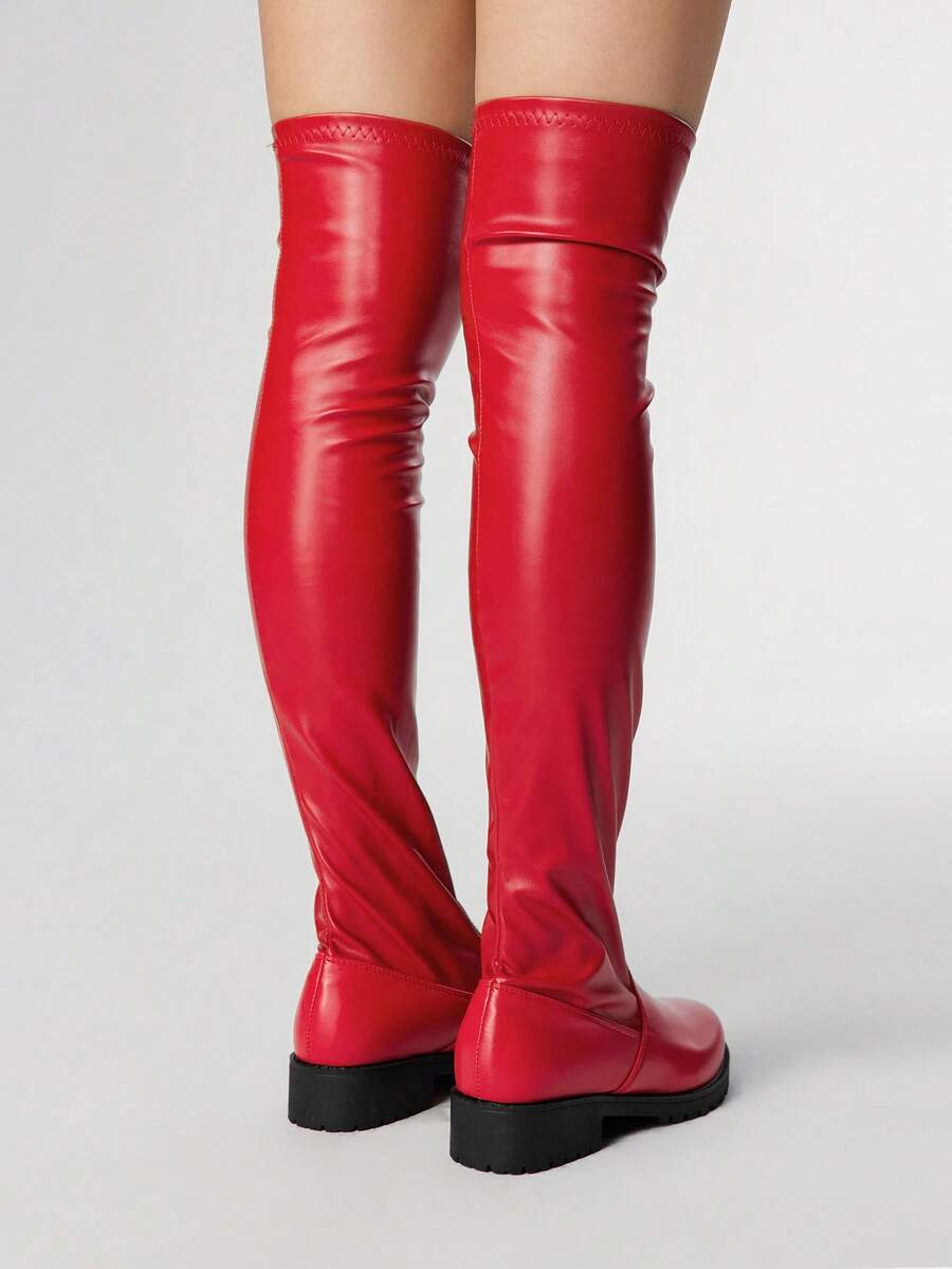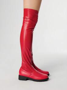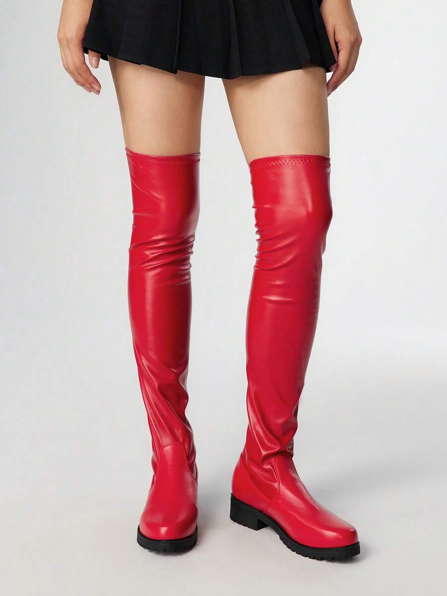 Botas elásticas plisadas de tacón bajo y punta cuadrada para mujer, con parte superior de cuero, botas altas de moda para exteriores con diseño deslizante, nuevas llegadas para otoño/invierno