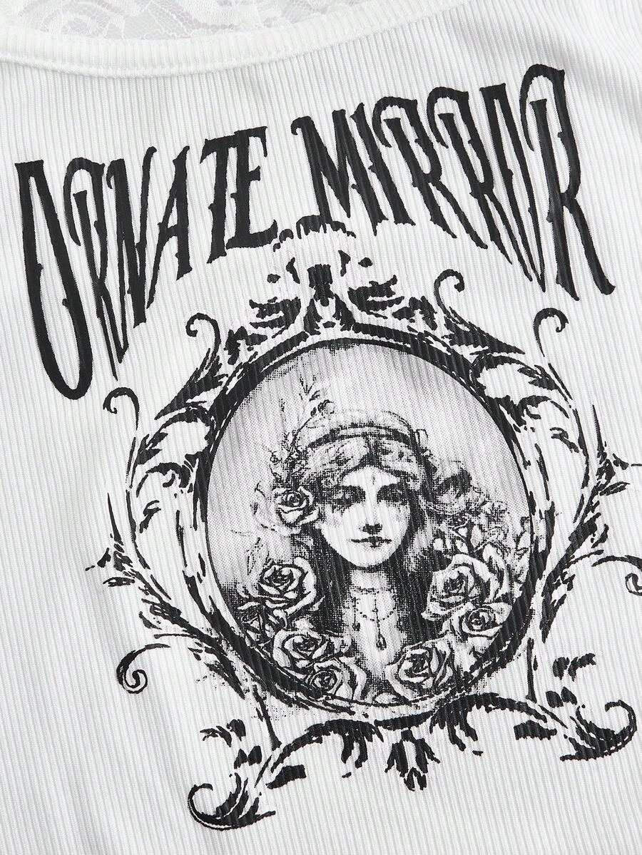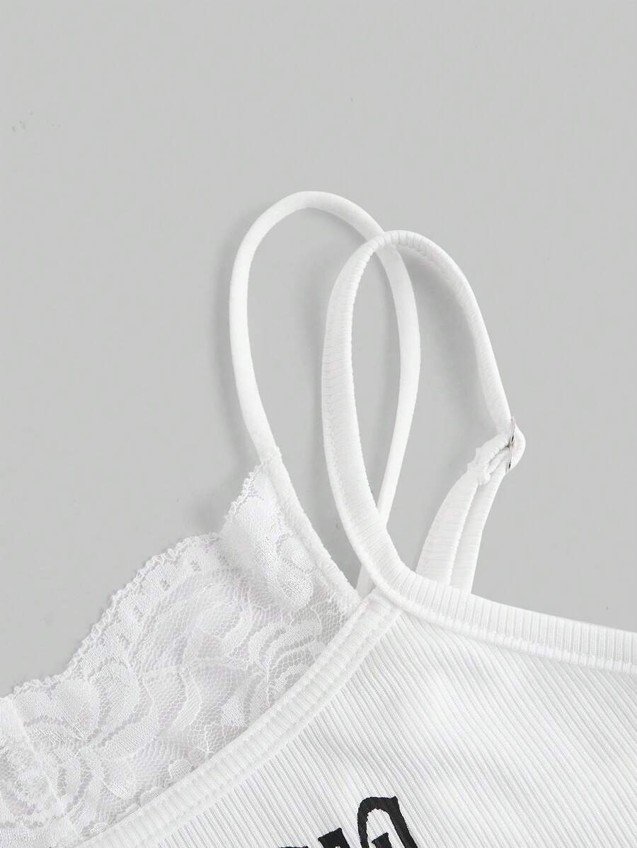 Goth Top de tirantes con encaje contrastante y estampado de eslogan para mujer, ajuste delgado de verano