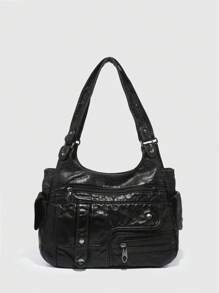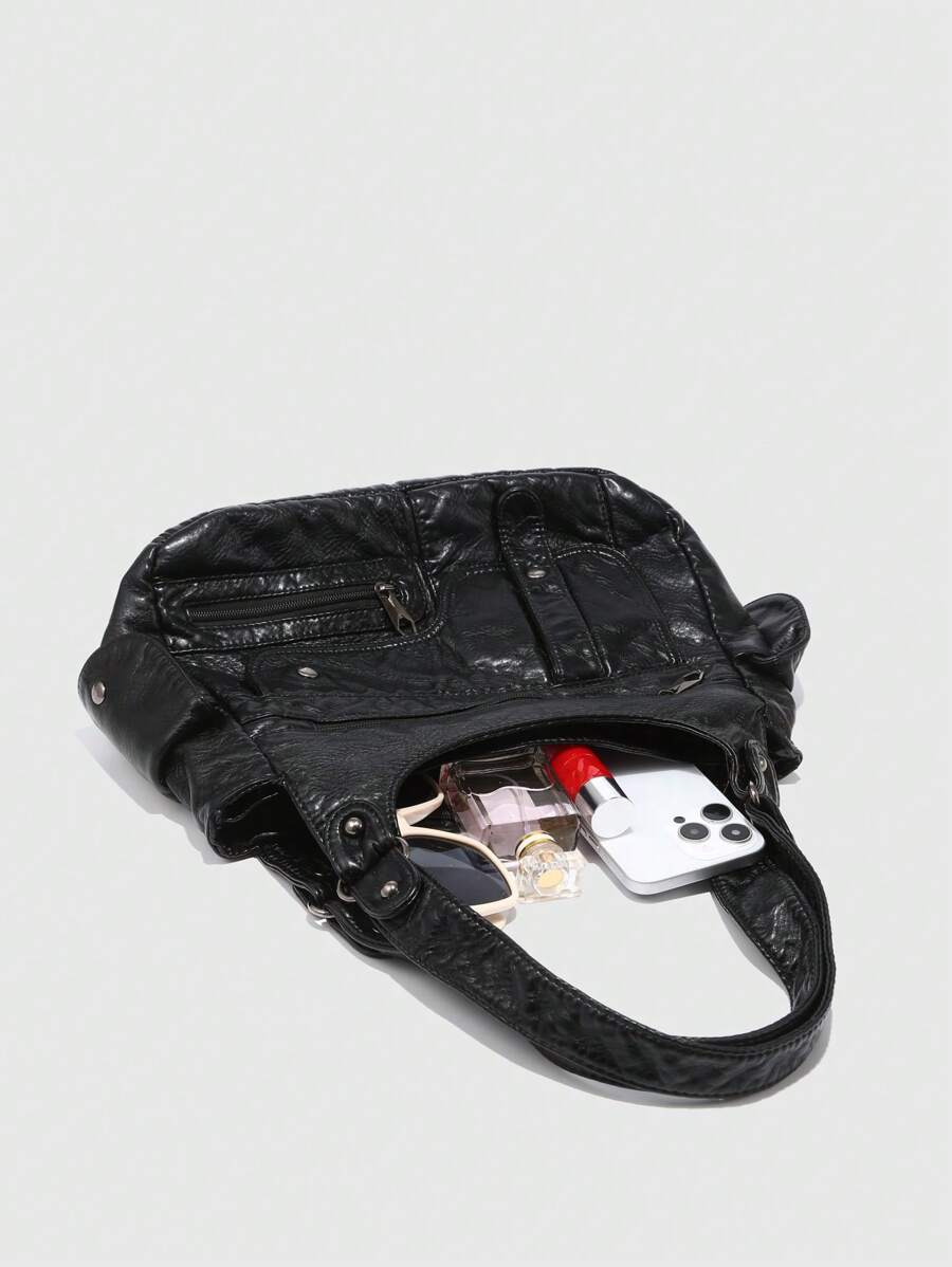 Goth Bolso de hombro tipo tote de estilo gótico vintage oscuro y denim desgastado para mujeres, con gran capacidad y bolsillos múltiples
