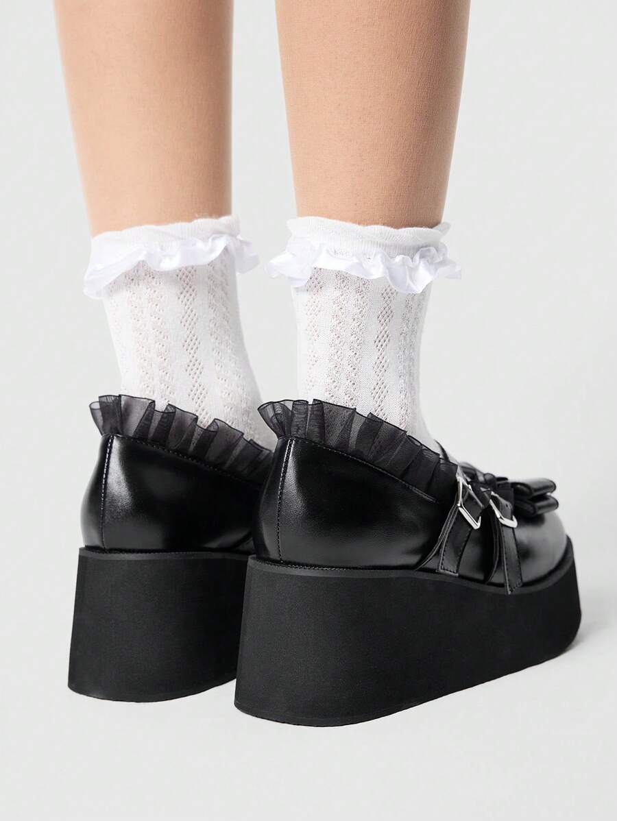 Goth Mocasines de mujer con plataforma y cuña, estilo punk, punta redonda, suela gruesa y decoración con hebilla, color negro
