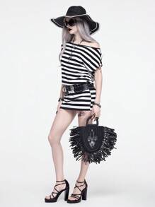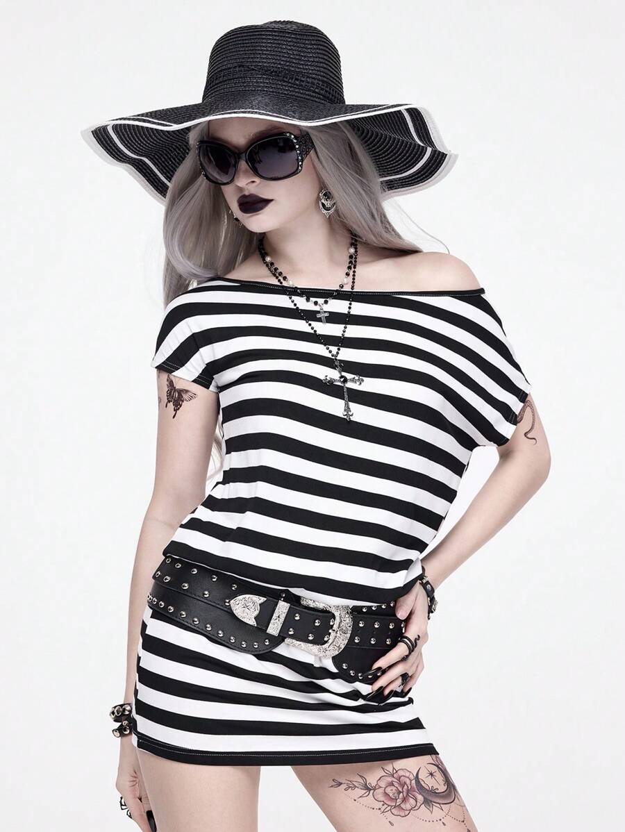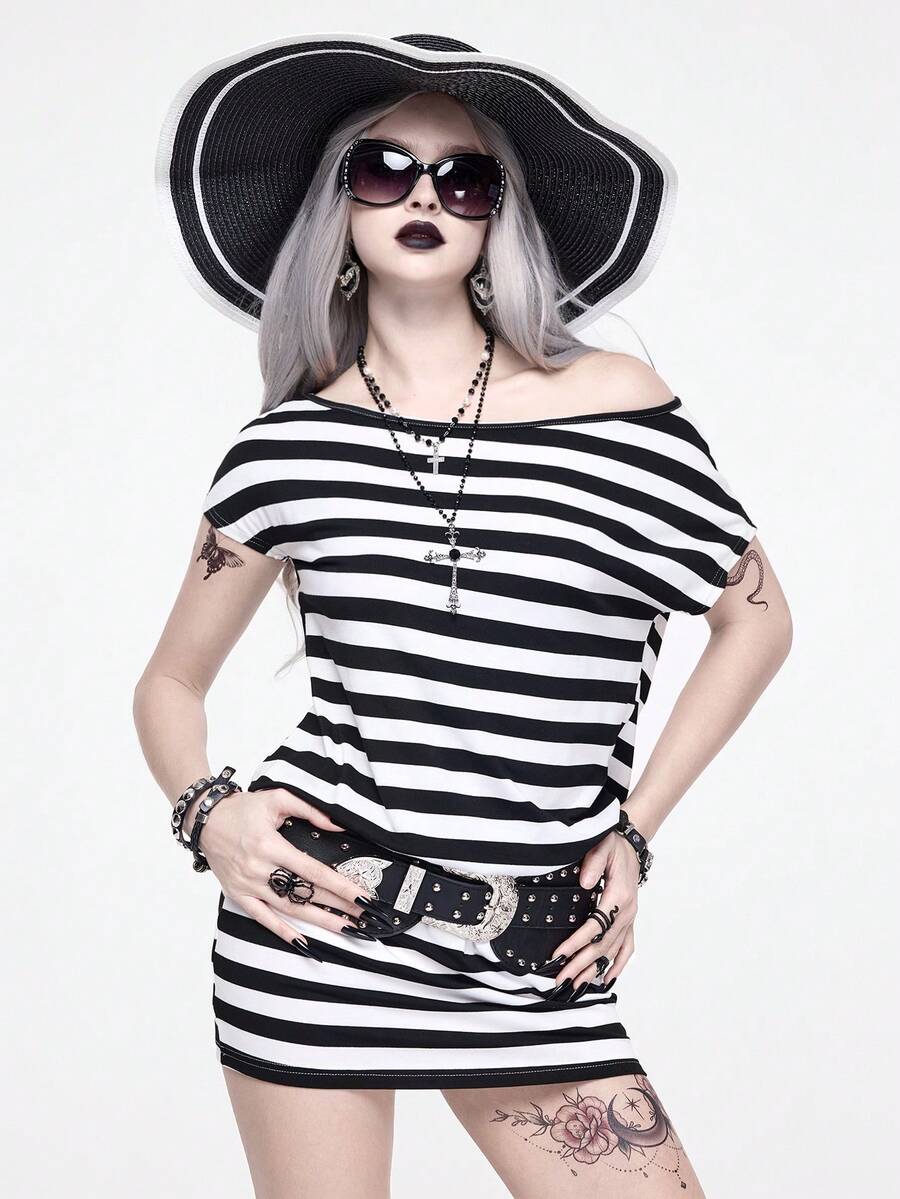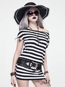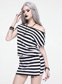 Goth Vestido mini ajustado asimétrico de rayas estilo gótico casual de vacaciones para mujeres