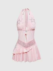 Goth Vestido de tirantes con decoración de estrellas de strass y espalda descubierta con estilo Y2K para mujeres
