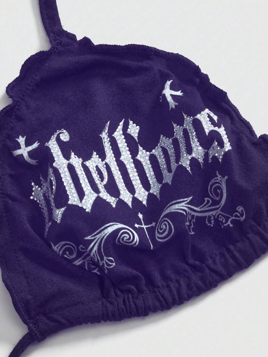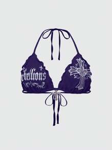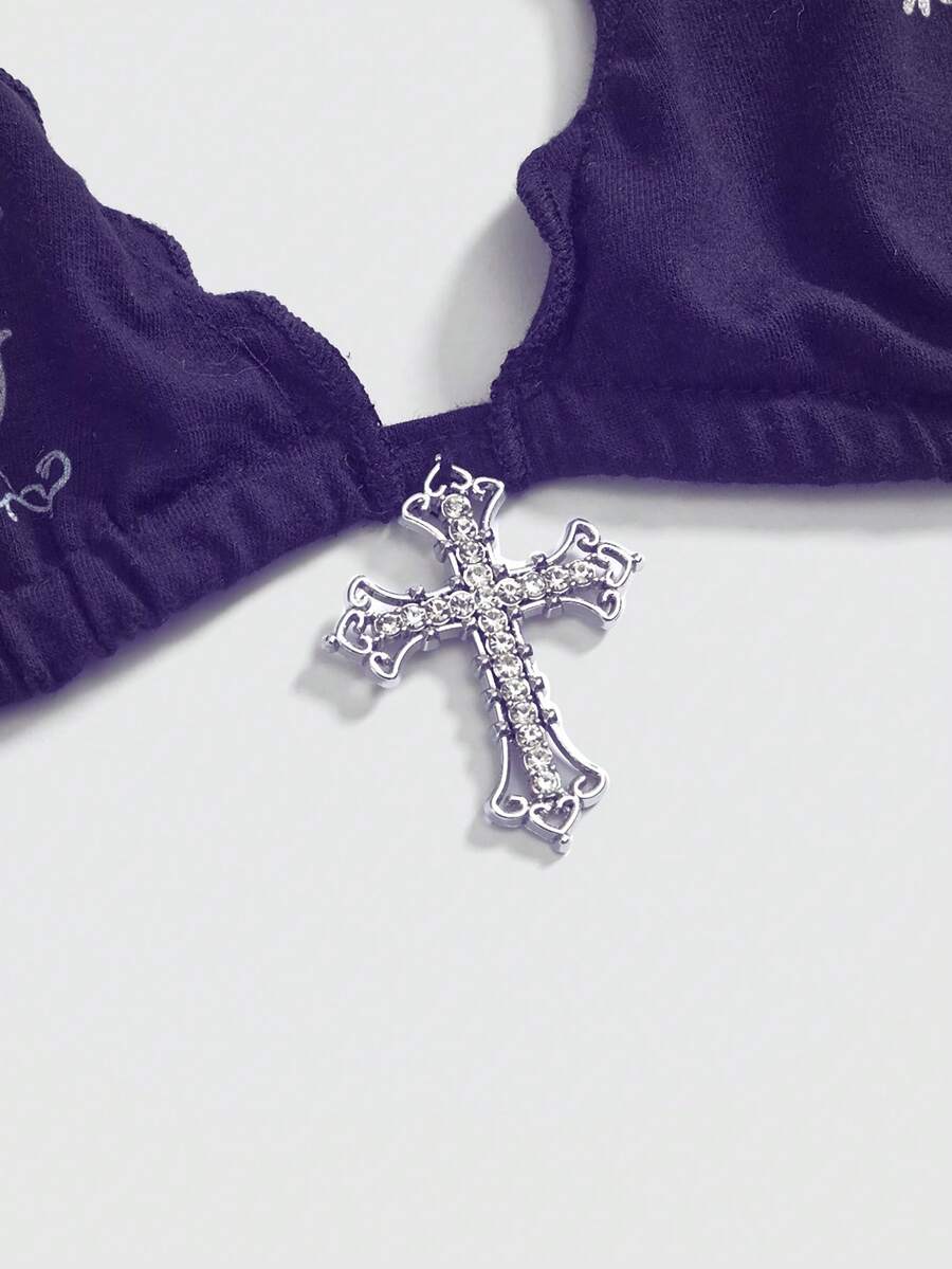 Goth Top de bikini tipo tanque con estampado de cruz gótico sexy, decoración de rhinestones, estilo Y2K