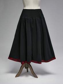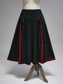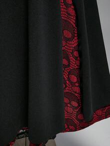 Goth Falda midi de talla grande para mujer con cintura ajustada, abertura alta, encaje y contraste de esqueleto gótico navideño