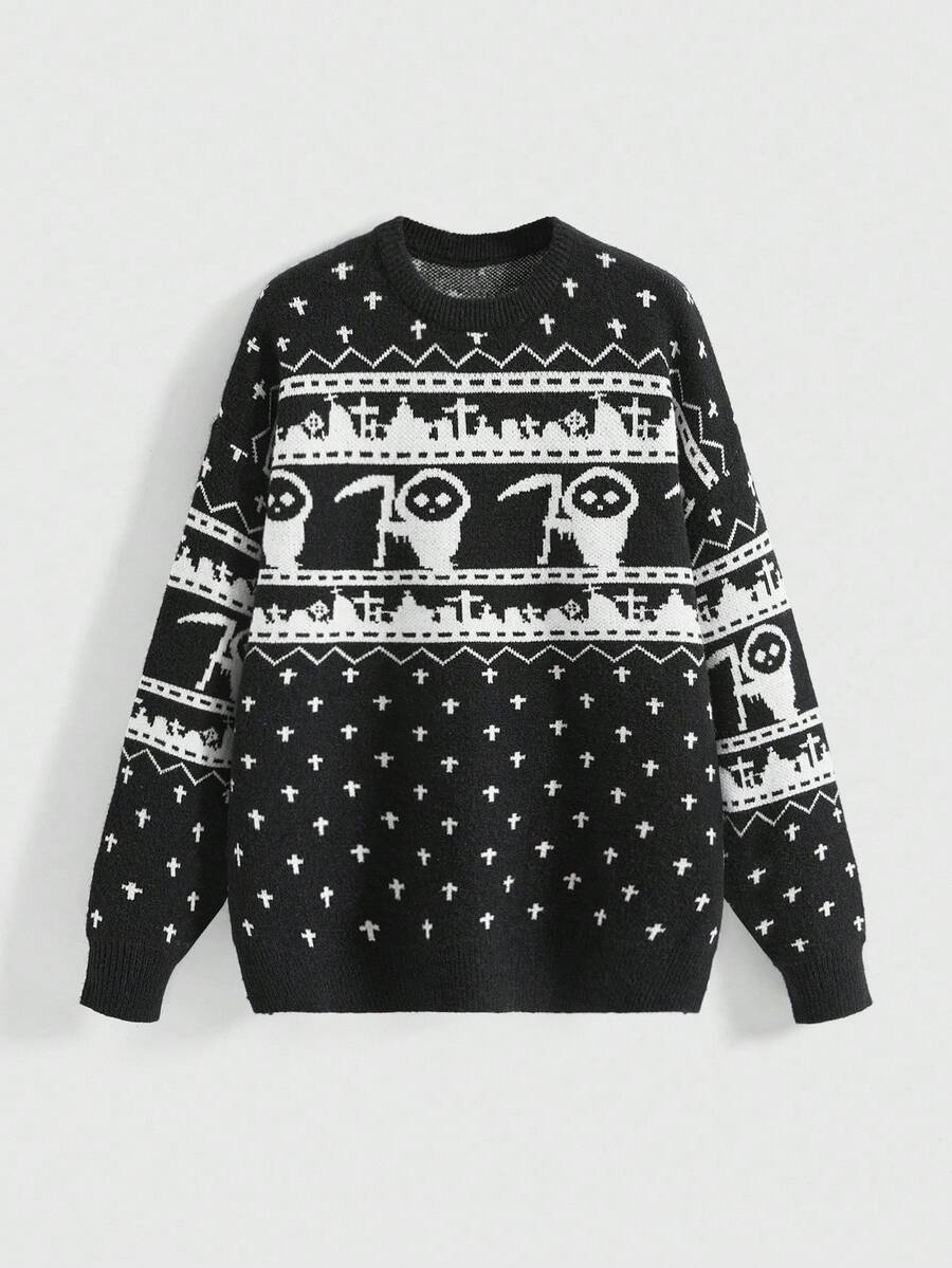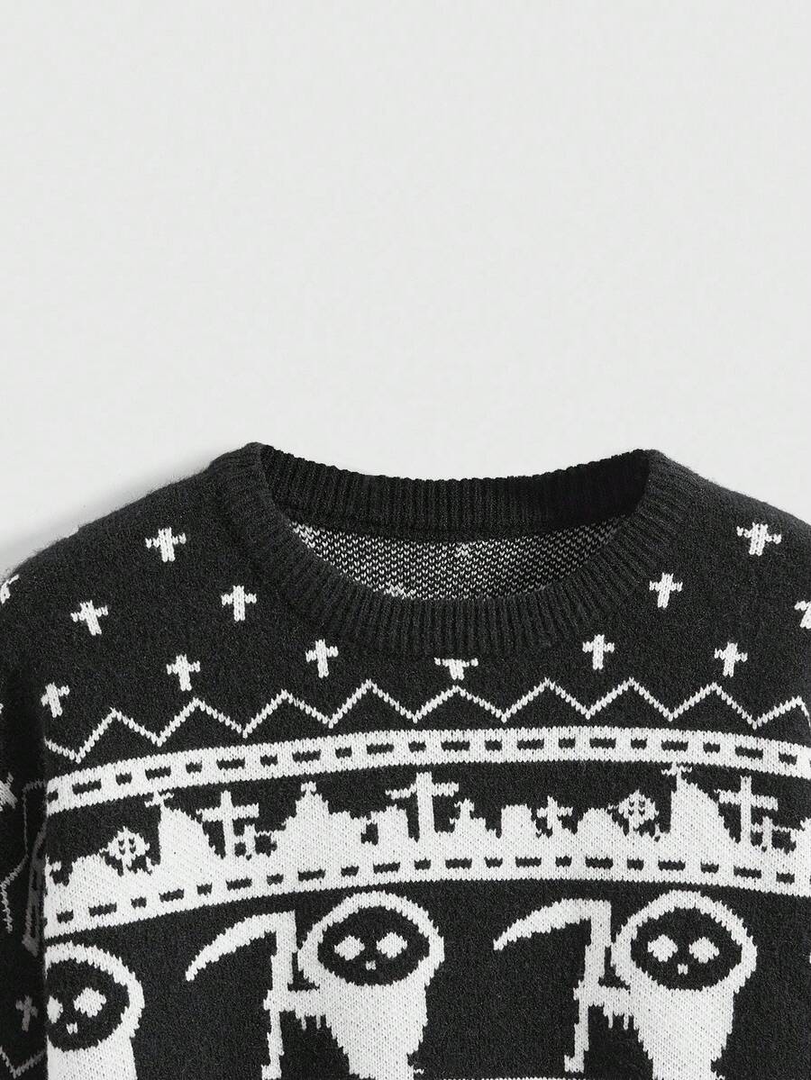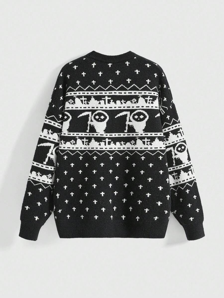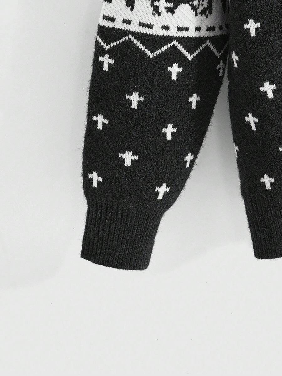 Goth Suéter de mujer con patrón de jacquard de cruz gótica, para Halloween