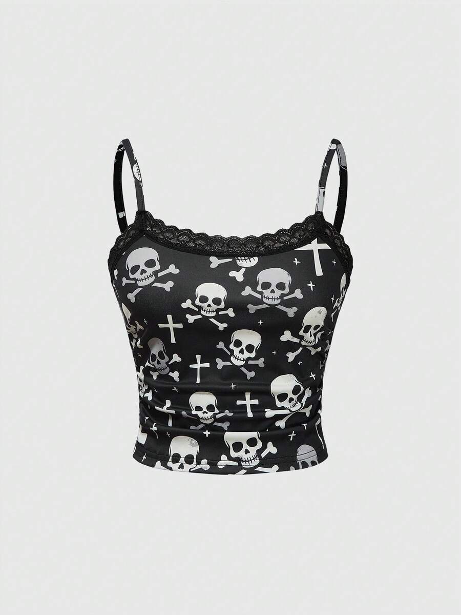 Conjunto de camiseta de tirantes y shorts con estampado de cruz gótica y calavera, ropa de dormir informal
