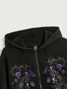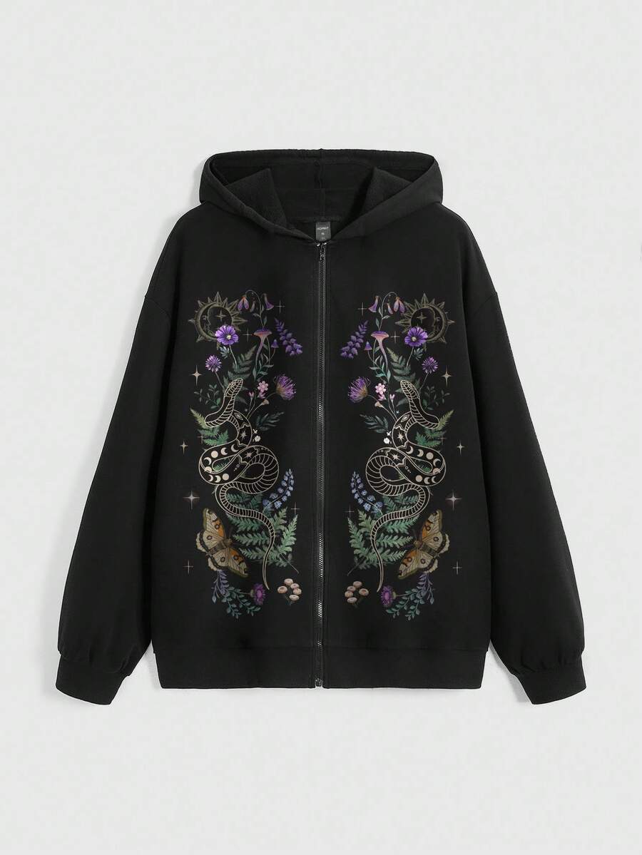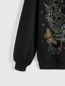 Goth Sudadera elegante y romántica con estampado de flores, mariposas y serpientes, de estilo gótico y oscuro Mori para mujeres