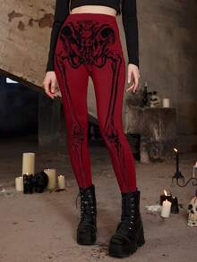 Goth Leggings largos casuales y elegantes de cintura alta con estampado de esqueleto para mujeres