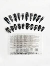 Kawaii 24 piezas largo ataúd con diseño de lazo Uña postiza & 1 pieza lima de uñas & 1 hoja cinta