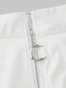 Goth Falda A-Line con cremallera frontal, colgante de luna y estilo clásico gótico misterioso de PU negro para mujeres