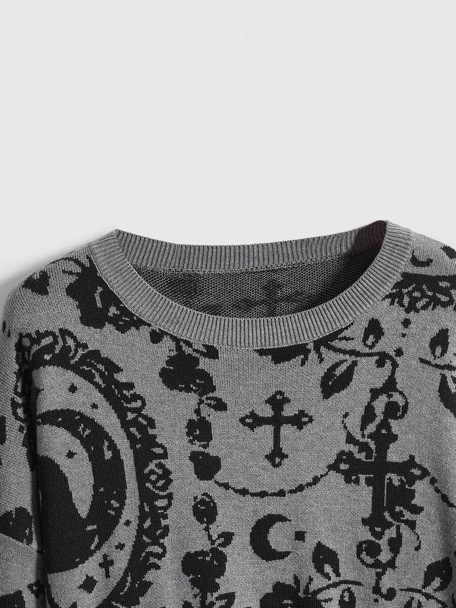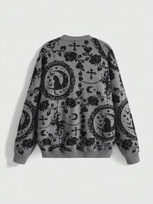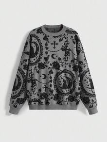 Goth Sudadera oscura con estampado completo de gato negro misterioso de la luna del palacio gótico, adecuada para Halloween