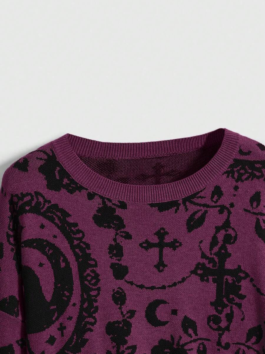 Goth Sudadera oscura con estampado completo de gato negro misterioso de la luna del palacio gótico, adecuada para Halloween