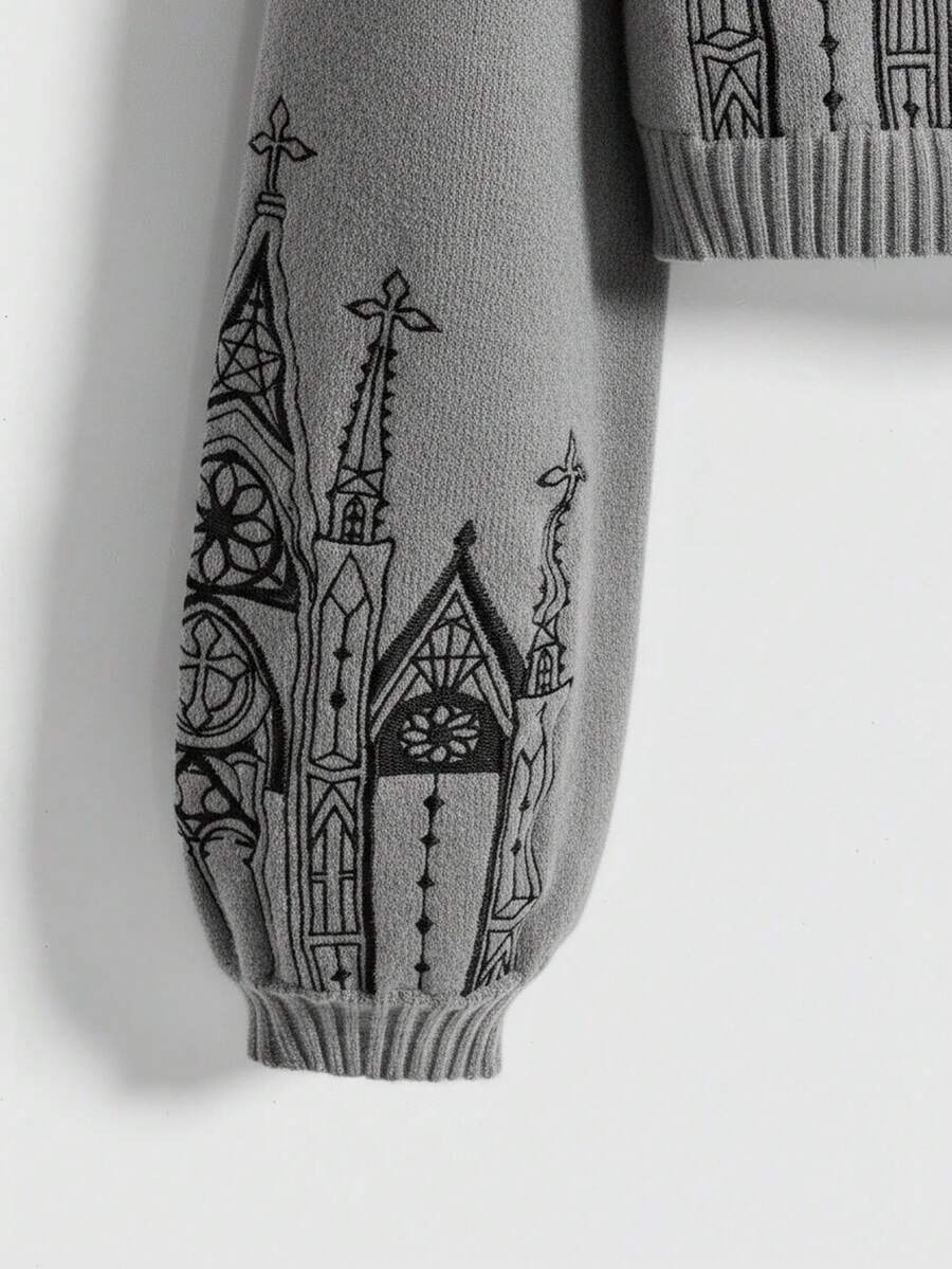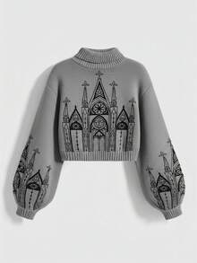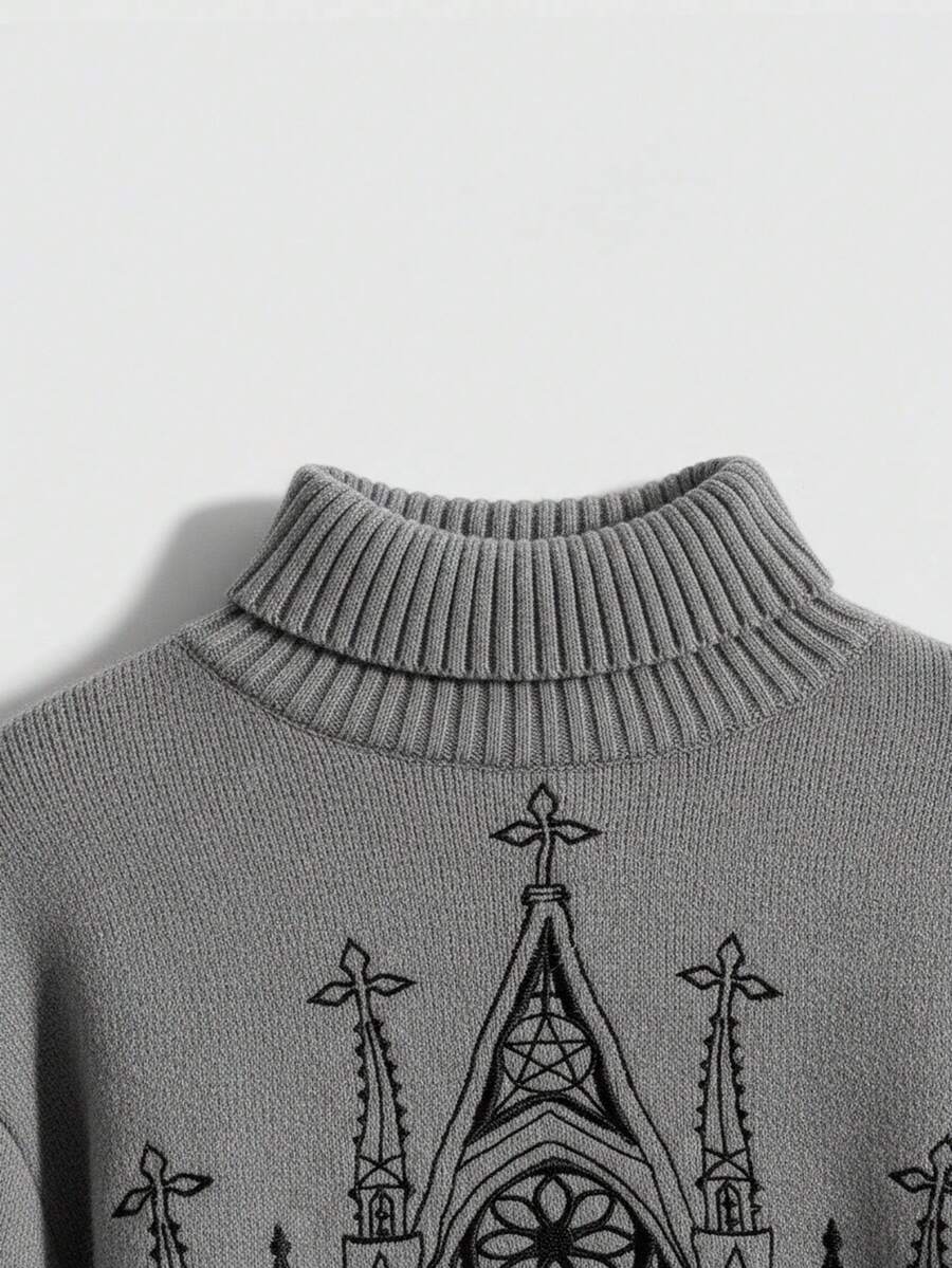 Goth Suéter de cuello alto bordado con estilo gótico palaciego