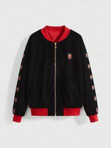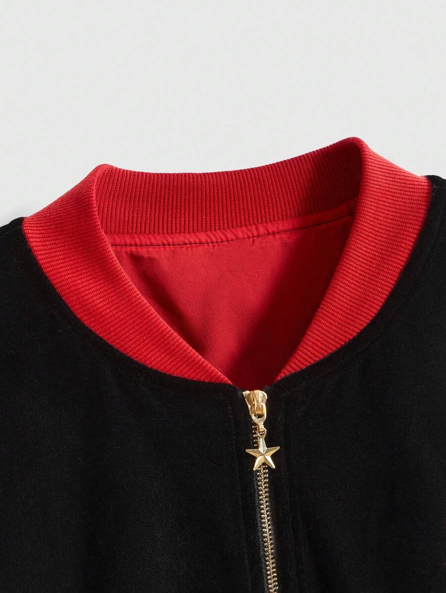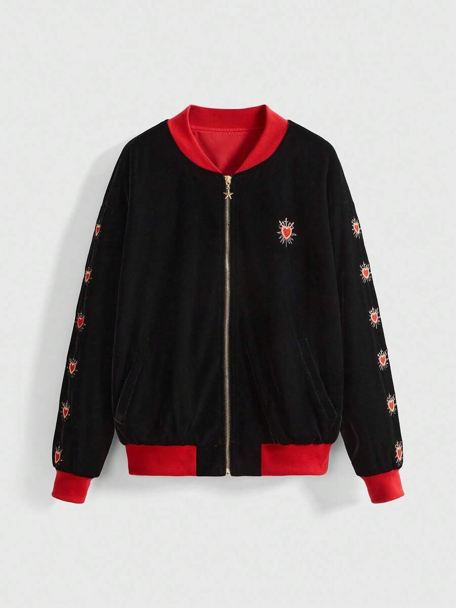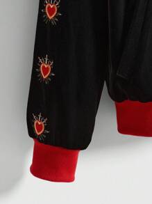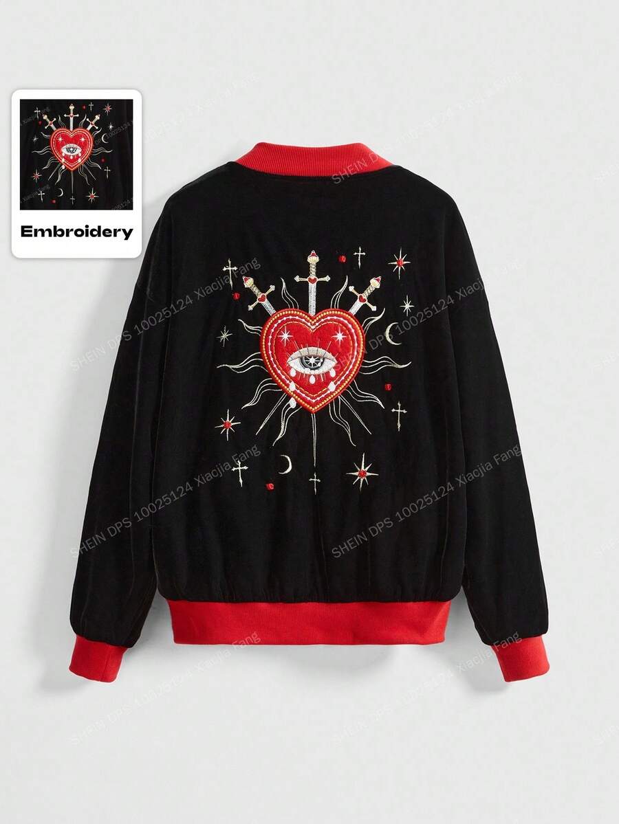 Goth Chaqueta de terciopelo negro con cuello cuadrado, bordados de corazón, gema, lágrima de cristal y estrella, en estilo gótico palaciego para mujer