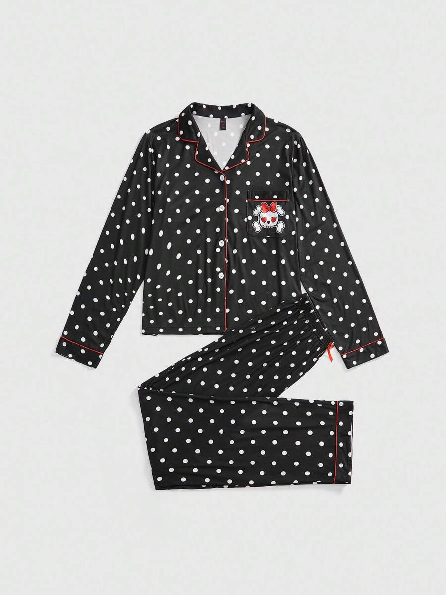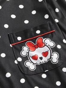 Goth Conjunto de pijama de manga larga con botones, estampado de calavera y lunares en estilo gótico