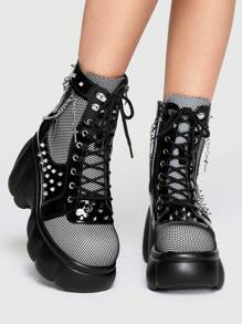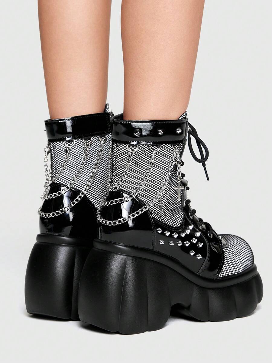 Grunge Punk Botas de plataforma con cadena y tachuelas de estilo gótico punk, para Halloween, Año Nuevo y días festivos