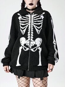 Goth Chaqueta de mujer de forro polar con estampado de esqueleto gótico para Halloween