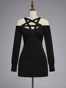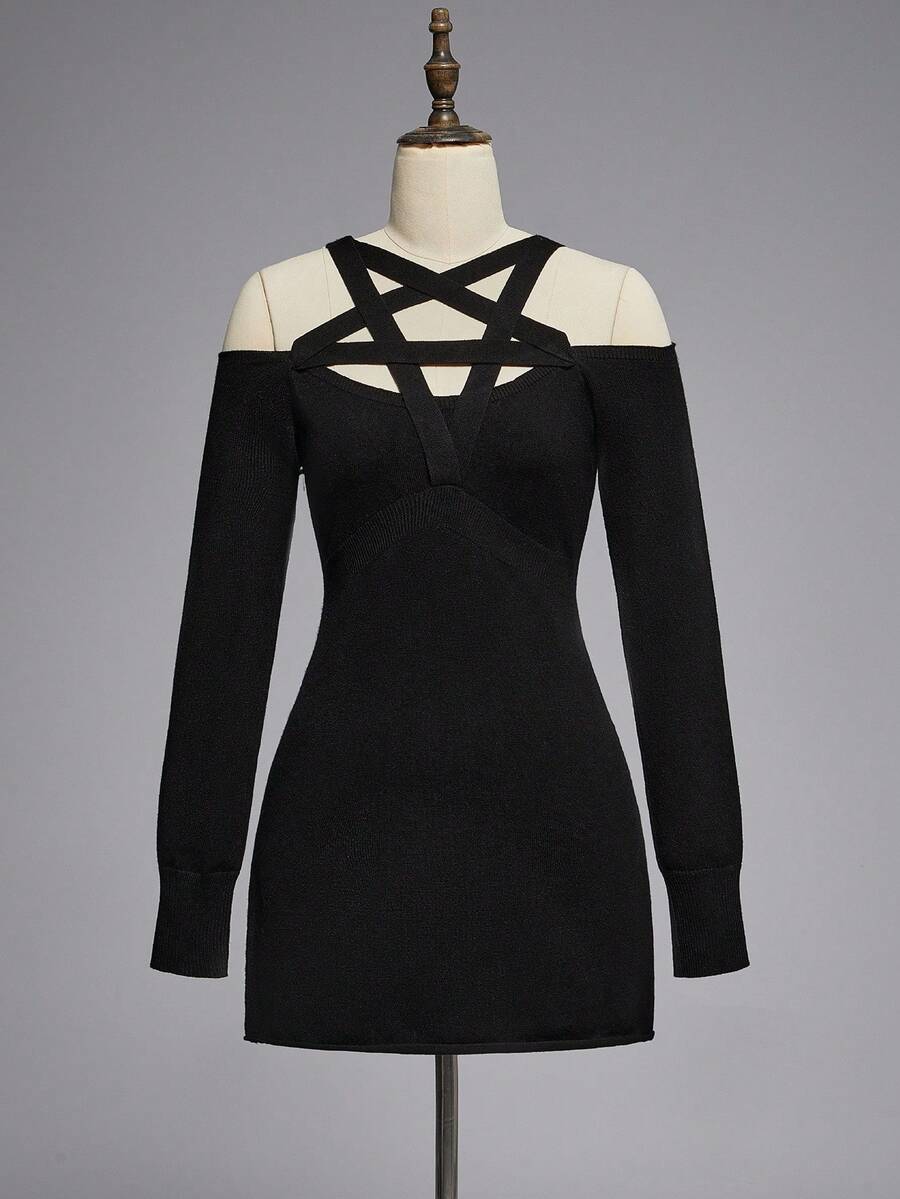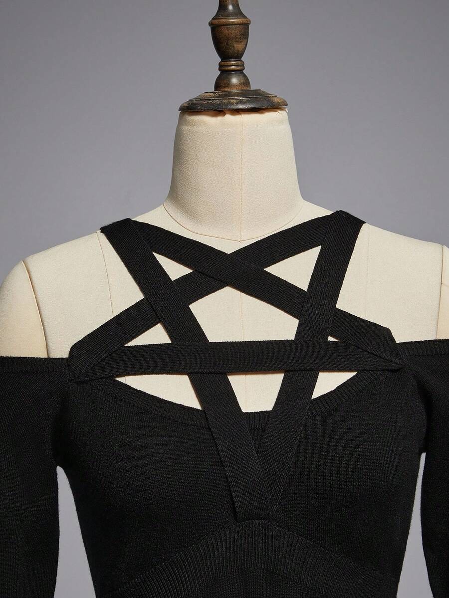 Goth Suéter asimétrico de mujer con hombros descubiertos, estilo gótico