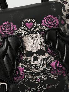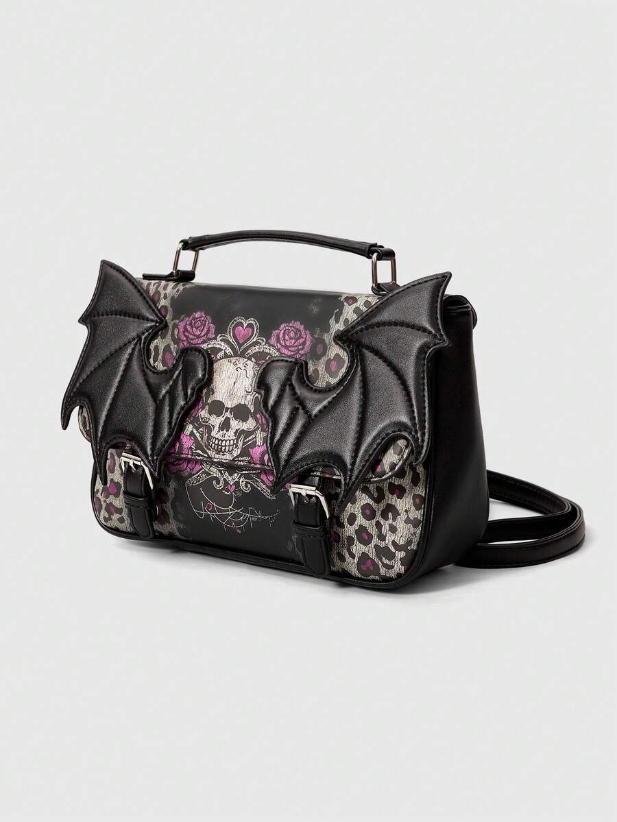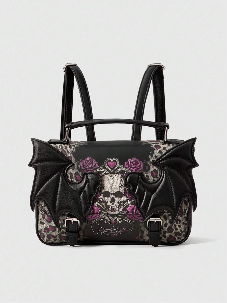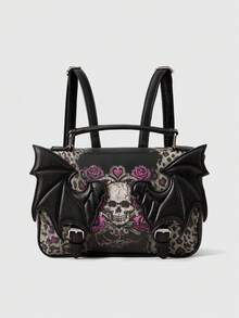 Goth Mochila de hombro con diseño de alas de murciélago estilo gótico, mochila escolar, Halloween